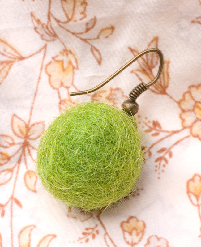 ぬるま湯と石鹸、そして手でコロコロと圧力を掛けると、羊毛が互いに絡みやすくなってきます。それを、時間を掛けながら一つの塊にしたのが、フェルト製品です。ネパールの農家のおばさんたちが、手間をかけながら日が暮れてから手でチクチクと作っています。