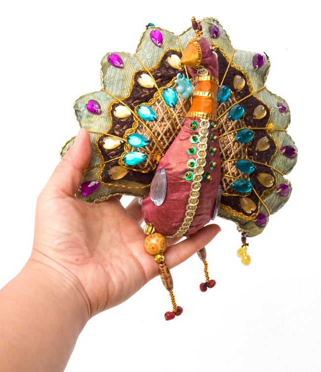 モチーフとなっている孔雀はインドの国鳥で、インドの民芸品では人気者です!こちらの孔雀は、ちょっと大きめでモスラに近いような気がしますが、それもまたご愛嬌!