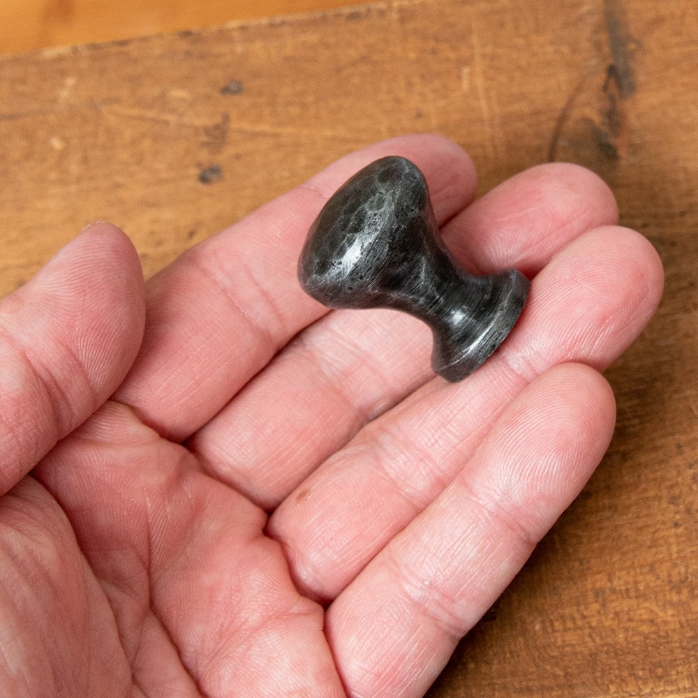 インドの首都デリーの東に位置する金属工芸の町、モラダバード。優れた金属加工品をインド各地に送り出してきた伝統工芸の街から、無骨な味わいのあるノブが入荷しました。黒くどっしりとした手触りで、家具に取り付けるだけでアンティーク調の風合いを付加してくれる素敵な一品です。ハンドメイドの国・インドならではの微妙な個体差も愛着をかきたててやみません。