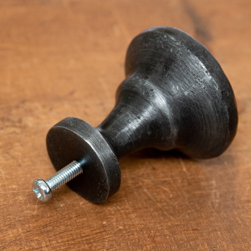 インドの首都デリーの東に位置する金属工芸の町、モラダバード。優れた金属加工品をインド各地に送り出してきた伝統工芸の街から、無骨な味わいのあるノブが入荷しました。黒くどっしりとした手触りで、家具に取り付けるだけでアンティーク調の風合いを付加してくれる素敵な一品です。ハンドメイドの国・インドならではの微妙な個体差も愛着をかきたててやみません。