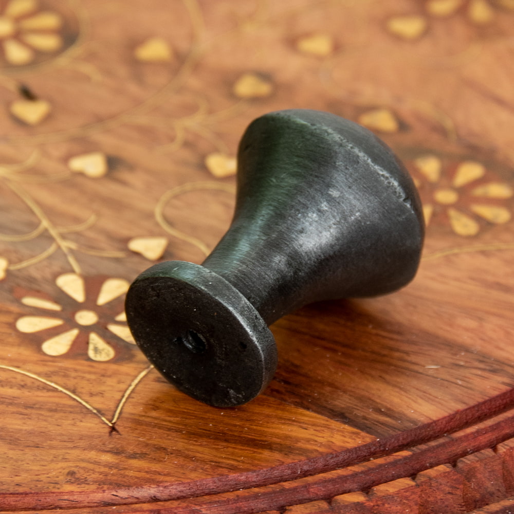 インドの首都デリーの東に位置する金属工芸の町、モラダバード。優れた金属加工品をインド各地に送り出してきた伝統工芸の街から、無骨な味わいのあるノブが入荷しました。黒くどっしりとした手触りで、家具に取り付けるだけでアンティーク調の風合いを付加してくれる素敵な一品です。ハンドメイドの国・インドならではの微妙な個体差も愛着をかきたててやみません。