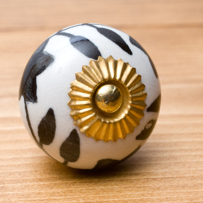 アジアンデザインの取っ手 陶器のプルノブ(ドアノブ)〔約3cm〕