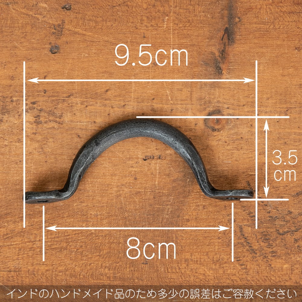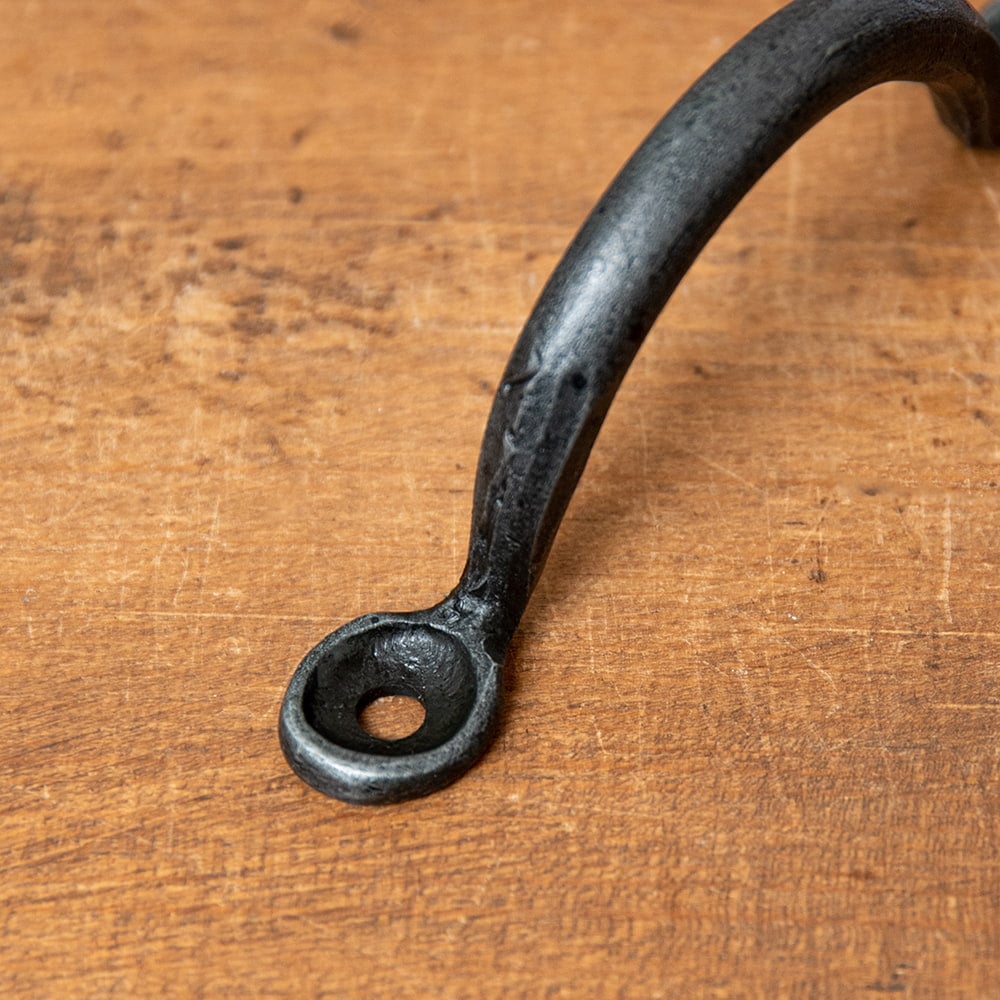 インドの首都デリーの東に位置する金属工芸の町、モラダバード。優れた金属加工品をインド各地に送り出してきた伝統工芸の街から、無骨な味わいのある取っ手が入荷しました。黒くどっしりとした手触りで、家具に取り付けるだけでアンティーク調の風合いを付加してくれる素敵な一品です。ハンドメイドの国・インドならではの微妙な個体差も愛着をかきたててやみません。