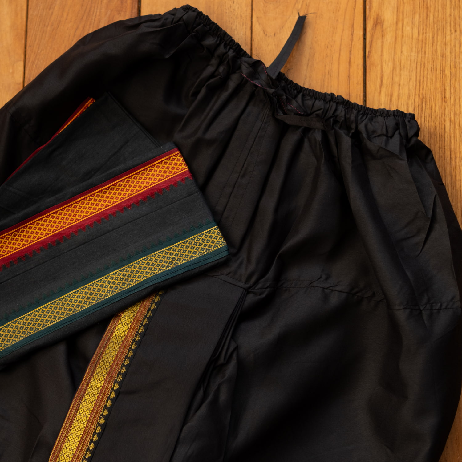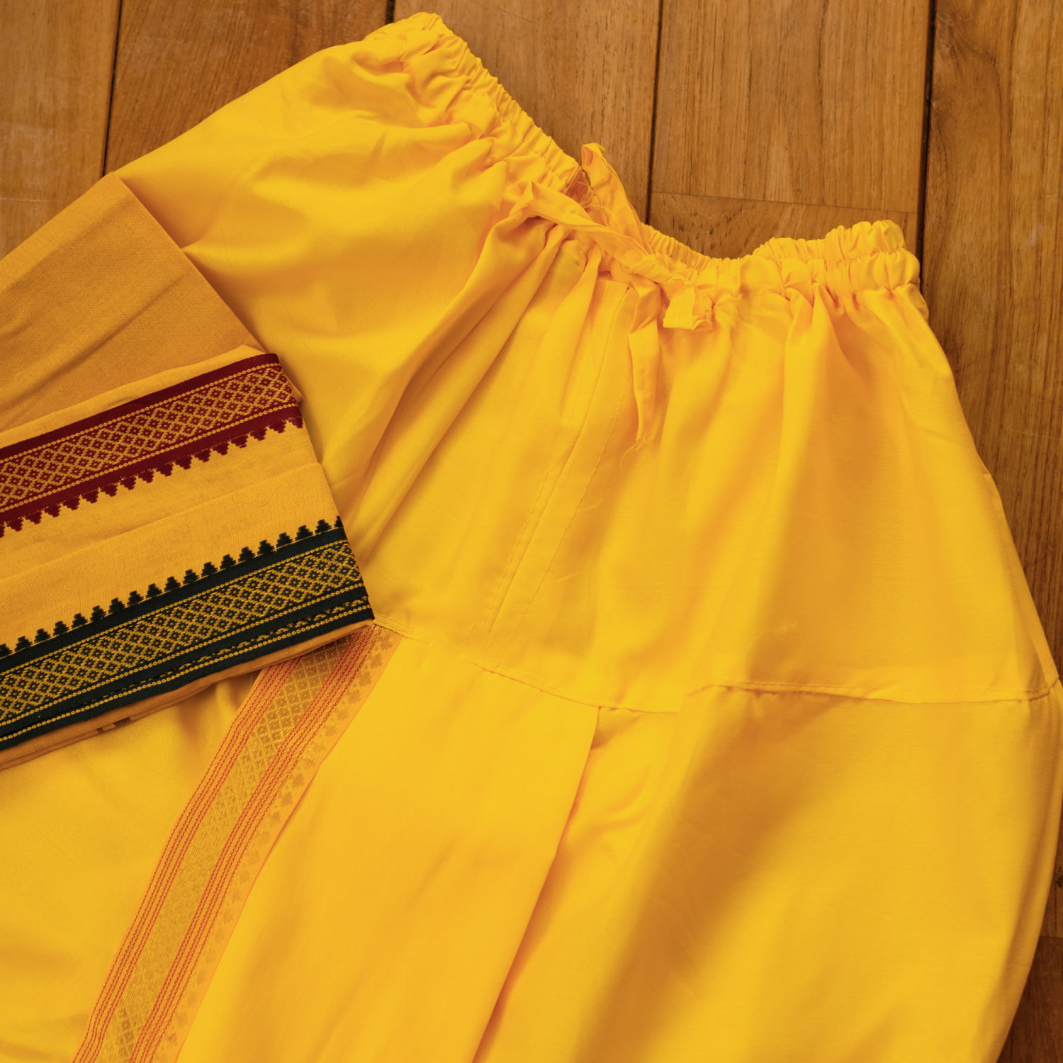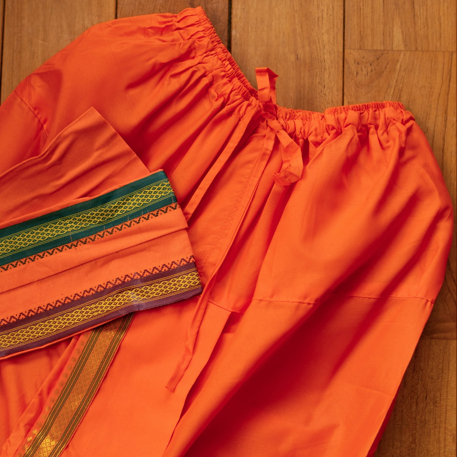 男性用民族衣装ドーティとドゥパッタの上下セットです。ドーティと呼ばれるボトムス、通常は布を腰から巻いてズボンにするのですが、この商品は最初からドーティ型に裁縫してある為、履くだけで大丈夫。上はドゥパッタと呼ばれるショールを羽織れば正にインディアンスタイル。おそらくティラキタにしかないであろうマニアックな一品です!