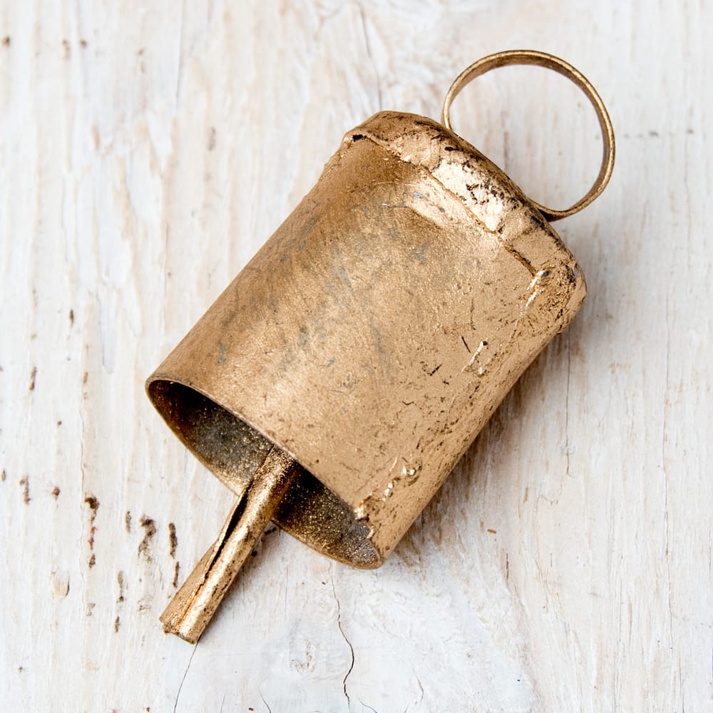 銅仕上げのシンプルなハンギングベルがインドからやって来ました。揺らすとチリンチリンと優しく鳴るベルのマッチングがとってもインドらしい風鈴(ベル)です。