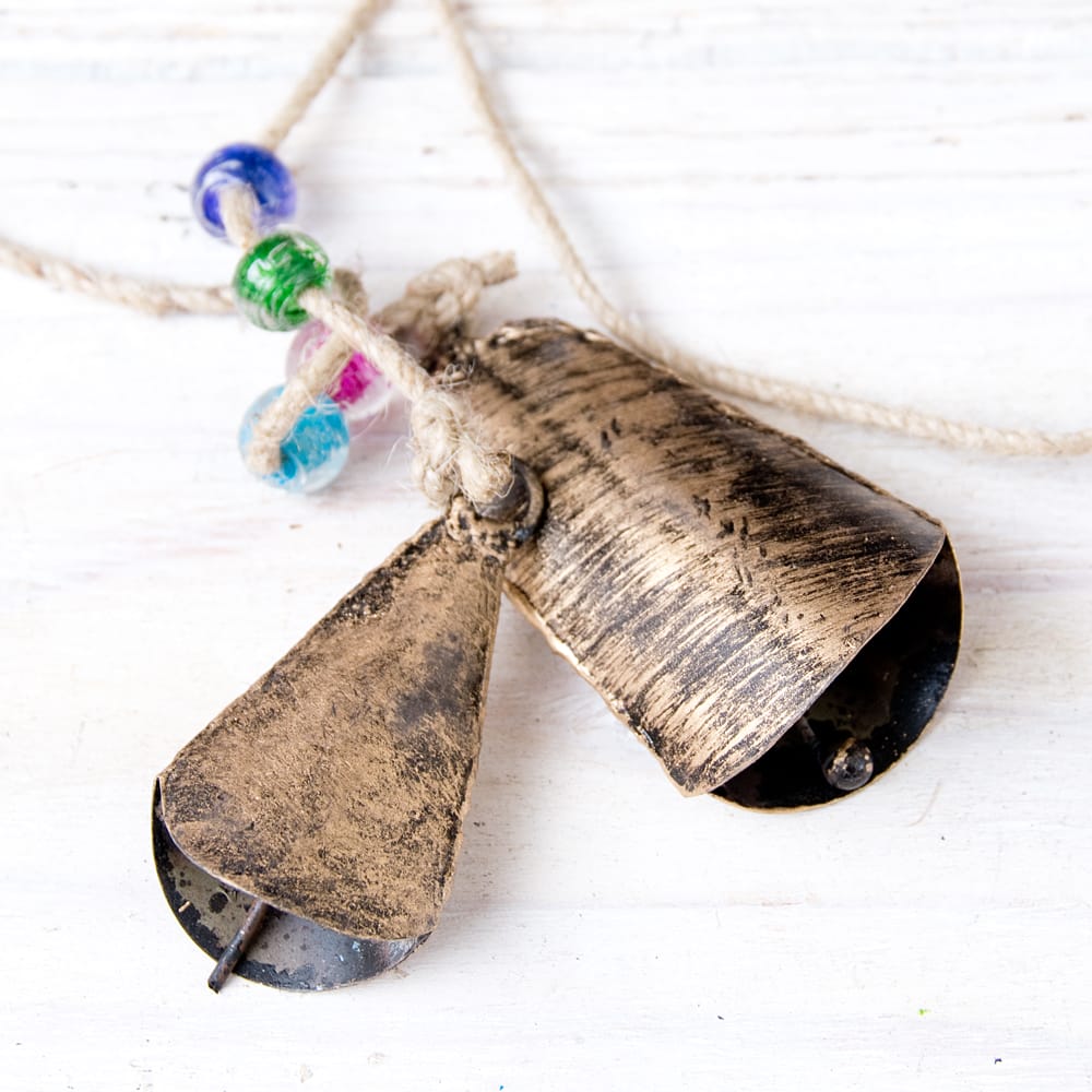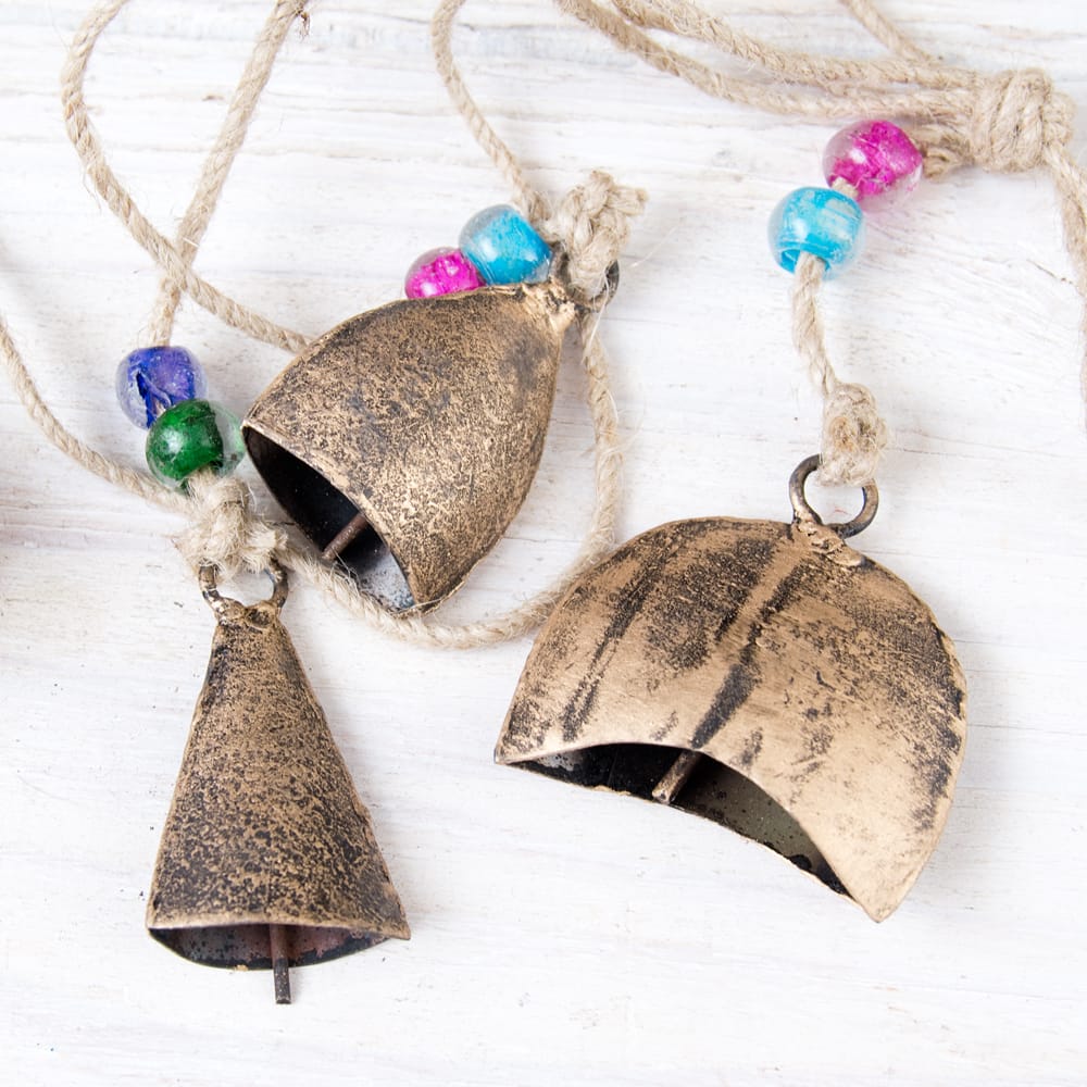 銅仕上げのシンプルなハンギングベルがインドからやって来ました。揺らすとカランコロンと鳴るベルのマッチングがとってもインドらしい風鈴(ベル)です。