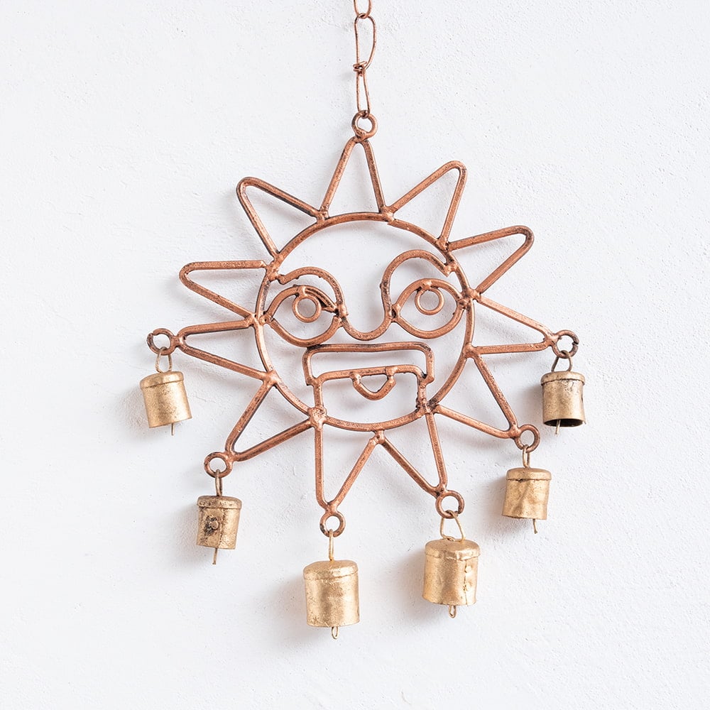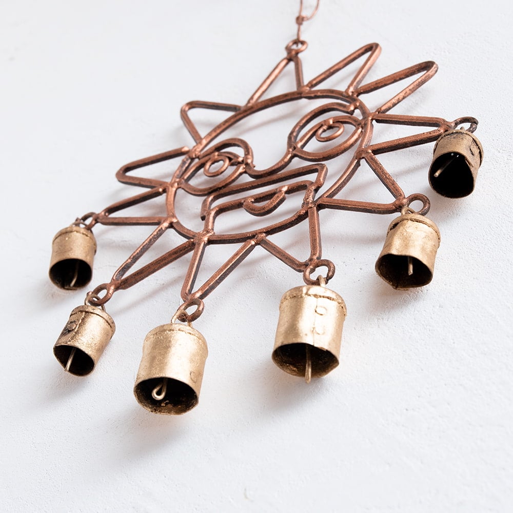 【送料無料・6個セット】インドの銅製ハンギング - 太陽神スーリャです。セットでお得になっています♪