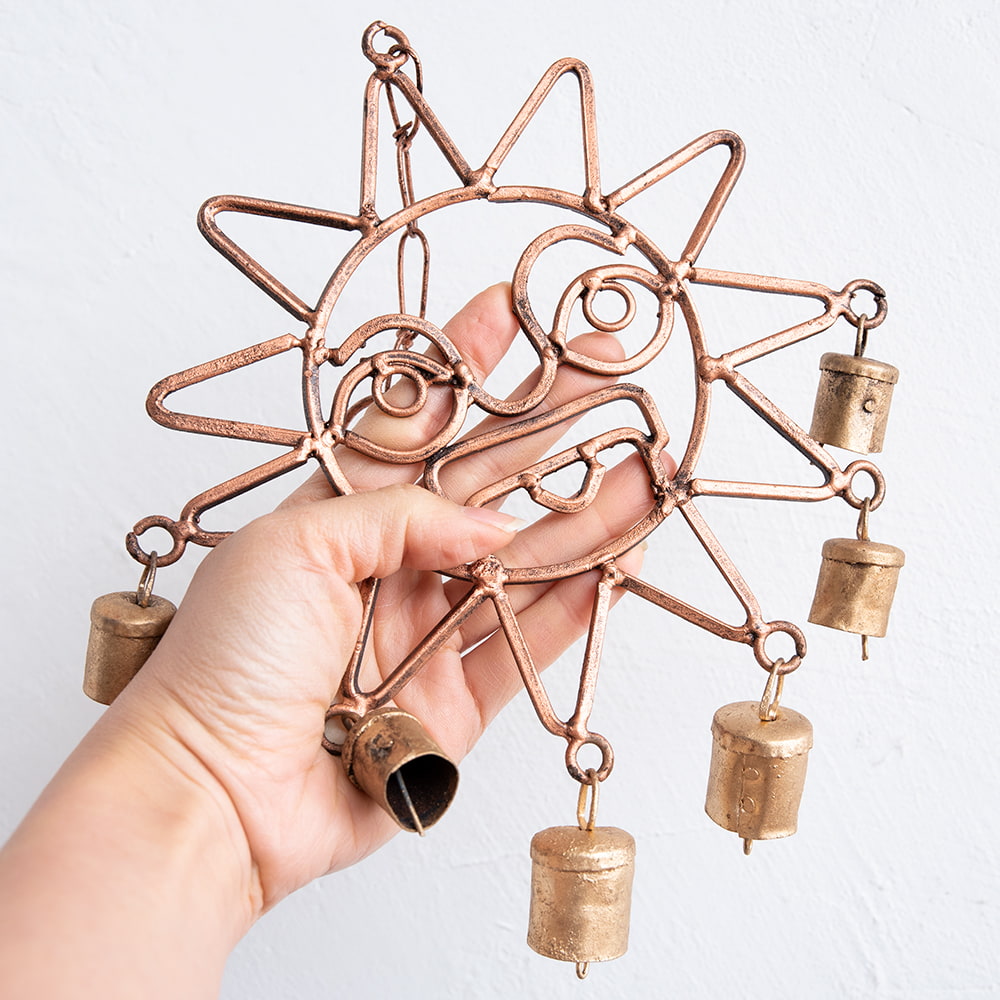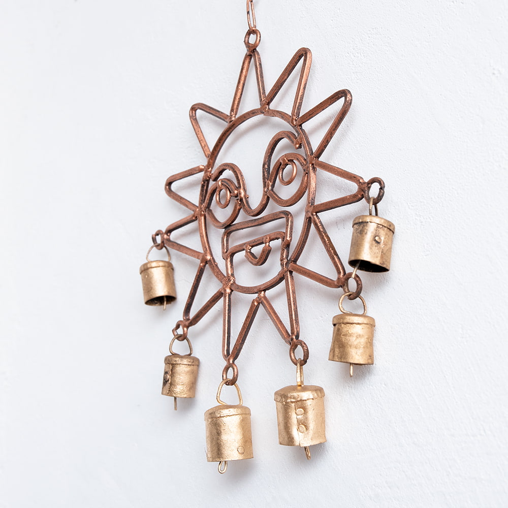 【送料無料・6個セット】インドの銅製ハンギング - 太陽神スーリャ