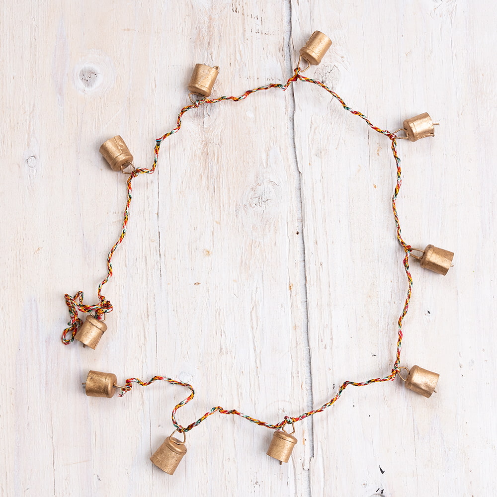 ドアチャイムなどへ!手作りのやさしい音色 インドの銅仕上げカウベル-【2cm*1.5cm*110cm-120cm】 x 6個