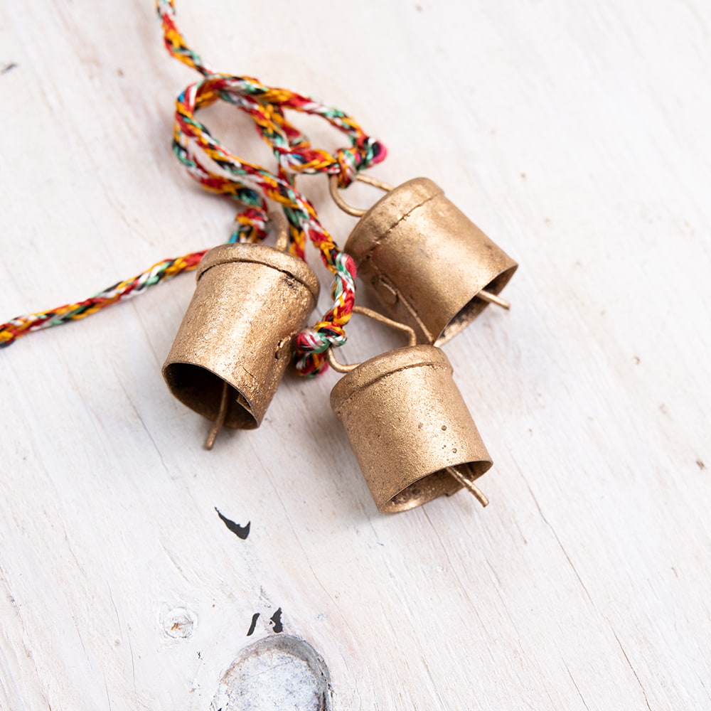 銅仕上げのシンプルなハンギングベルがインドからやって来ました。揺らすとカランコロンと鳴るベルのマッチングがとってもインドらしい風鈴(ベル)です。