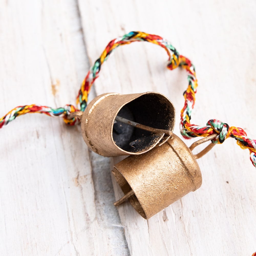 【送料無料・6個セット】ドアチャイムなどへ!手作りのやさしい音色 インドの銅製カウベル-【2cm*1.5cm*110cm-120cm】