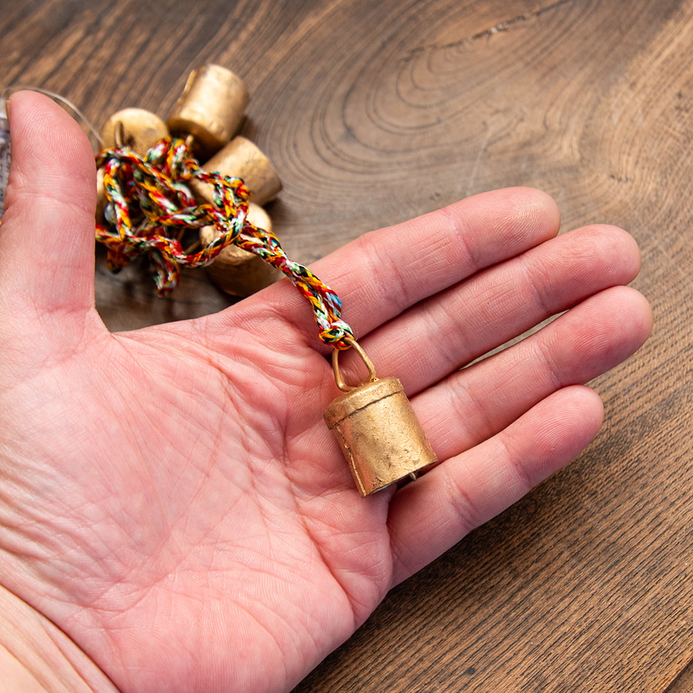 【送料無料・6個セット】ドアチャイムなどへ!手作りのやさしい音色 インドの銅製カウベル-【2cm*1.5cm*110cm-120cm】です。セットでお得になっています♪