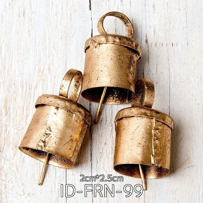 【3個セット】手作りのやさしい音色 インドの銅仕上げベル-【2cm*2.5cm】(ID-FRN-99)の写真です