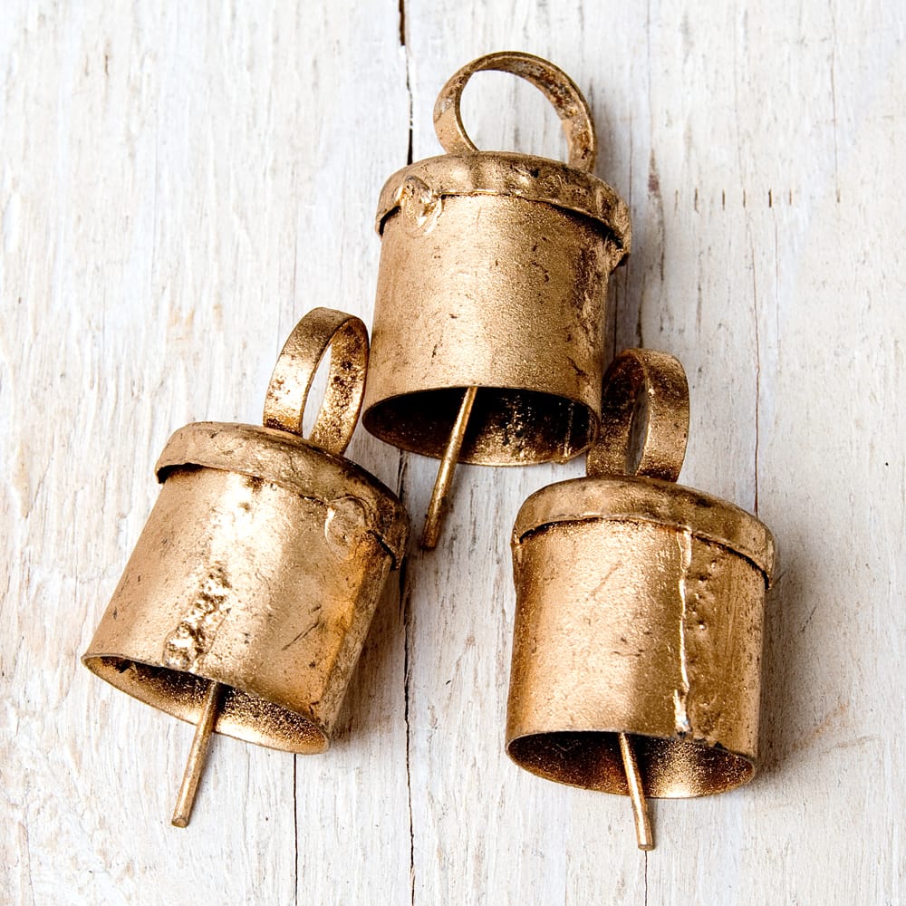3点セットでお送りいたします。インドの手製品の常として、ベルの舌部分が付属していない場合などがございます。ご了承の上お買い求めください。