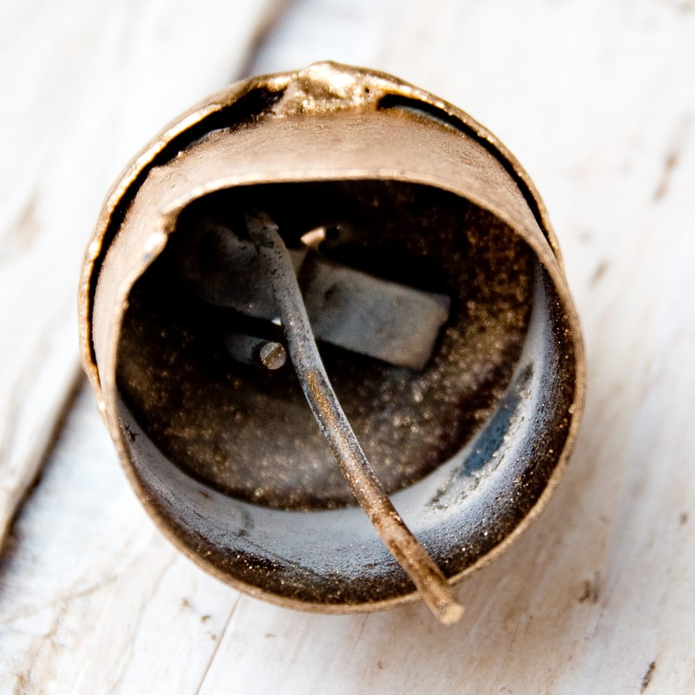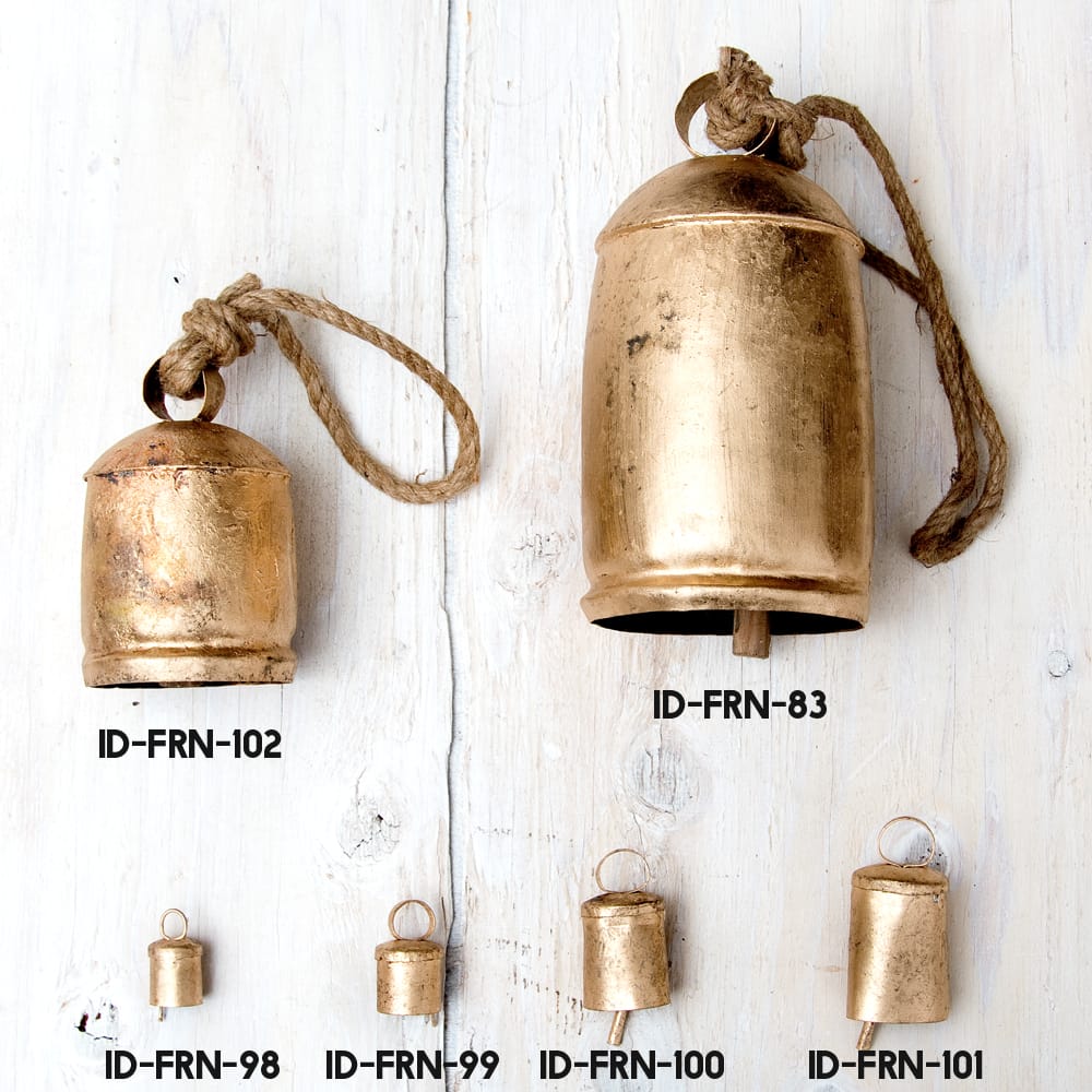銅仕上げのシンプルなハンギングベルがインドからやって来ました。揺らすとチリンチリンと優しく鳴るベルのマッチングがとってもインドらしい風鈴(ベル)です。