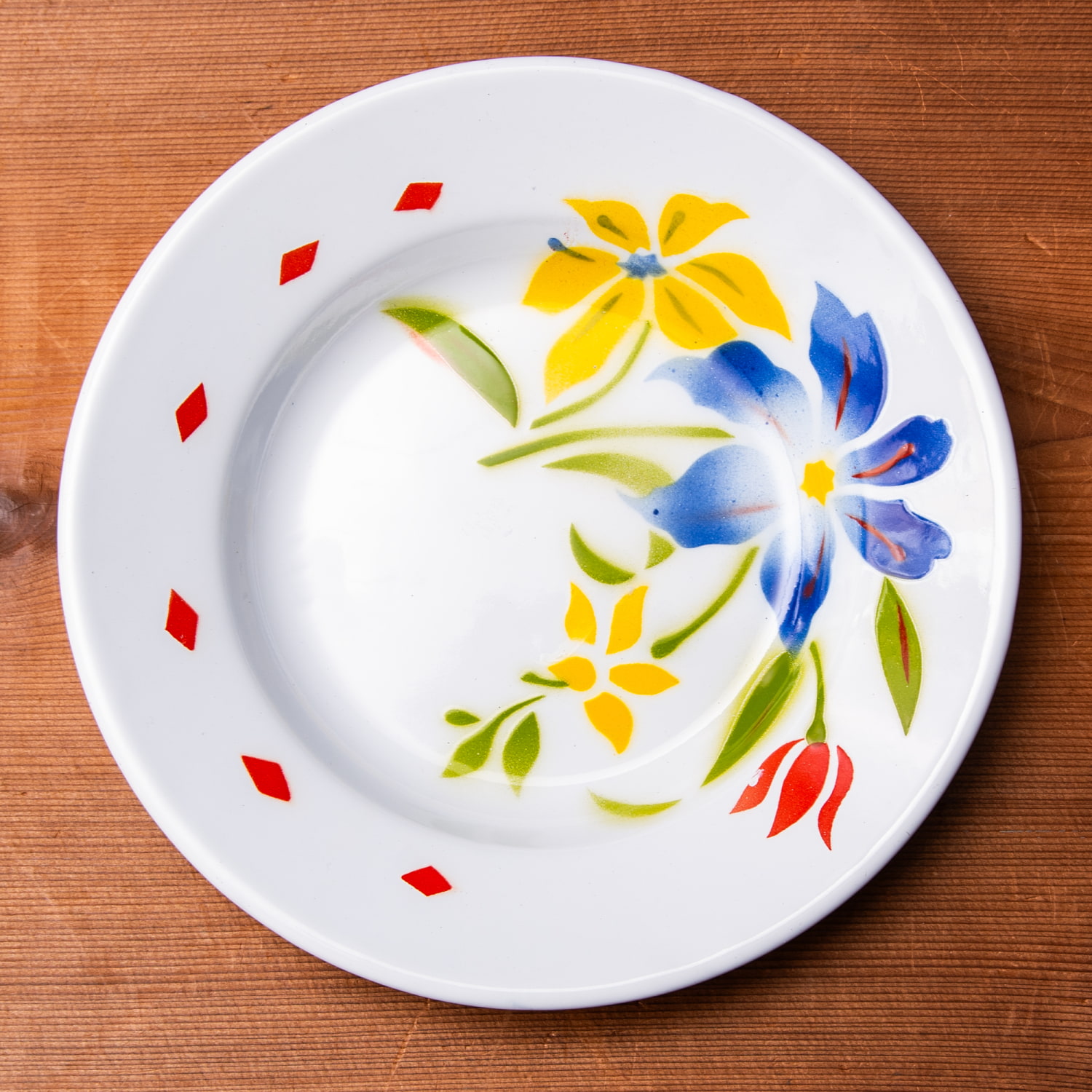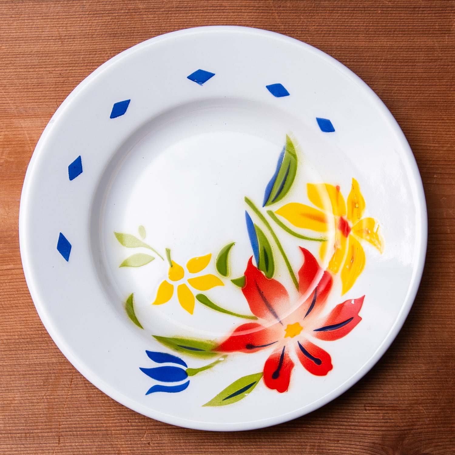 レトロ感あふれるホーローの飾り皿です。