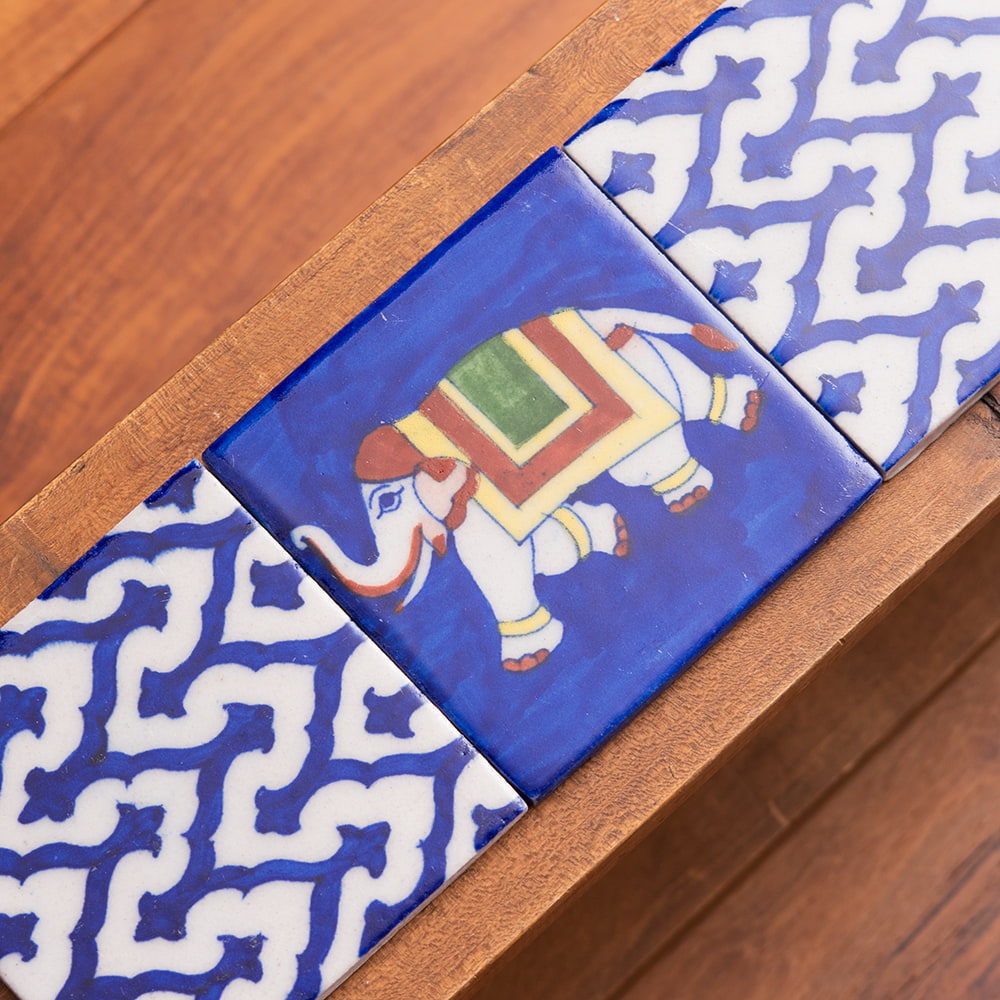 〔10cm×10cm〕ブルーポッタリー ジャイプール陶器の正方形デコレーションタイルインド象