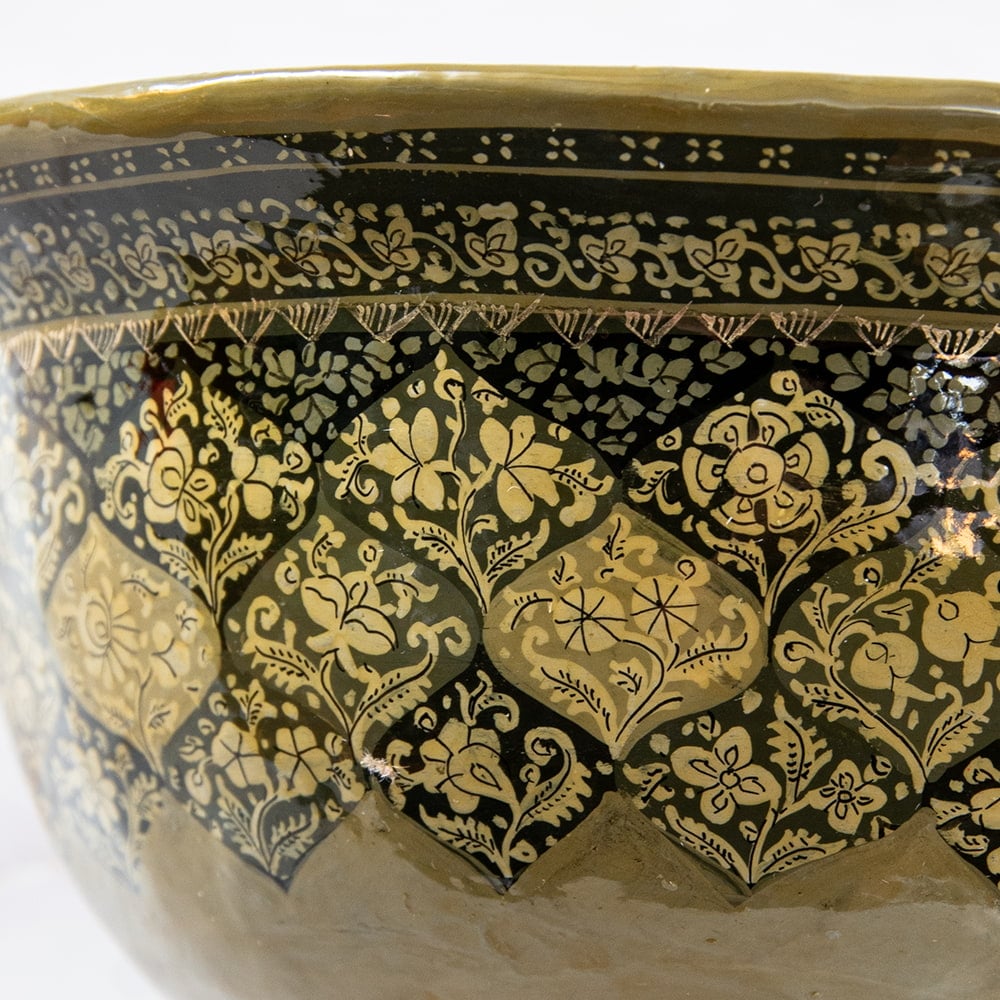 【超高精細・一点もの】カシミールのペーパーマッシュ 格子花柄 椀型小物入れ 約11.5cm x 約11.5cm