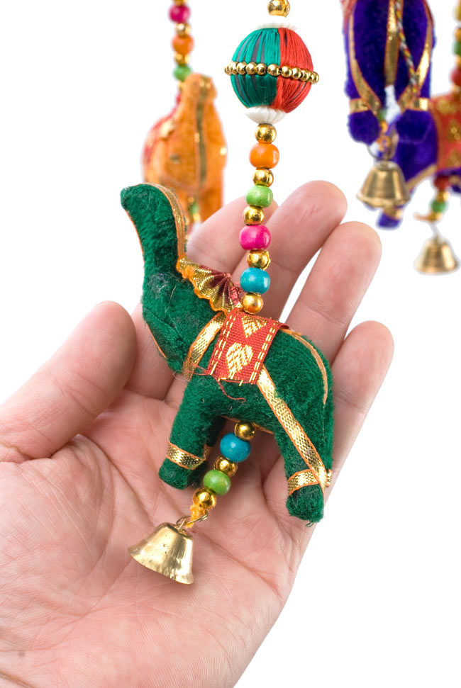 象さんが一頭なのは少し淋しいですが、小さいとはいえ全然作りに手抜きなし! ついているベルは鳴りませんが、空気の入れ替えなどのときにはゆらゆら揺れて、なんだかインドに行ったような気になります。色違いでリピートしたいです。