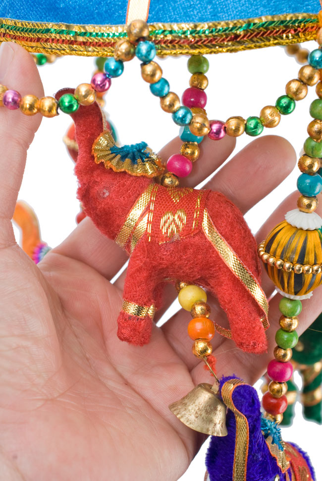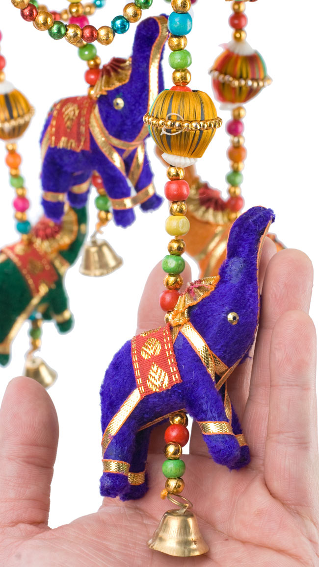 ぞうさんがぷらぷらして、かわいいです。色鮮やかで手作り感が素敵。アジア雑貨店で、似たものを見かけましたが、このような一連タイプのぞうさんはありませんでした。一連タイプは、コンパクトでちょっとした飾りをするのにちょうど良いです。窓辺のカーテンの所に飾ったり、棚の横につけたりして楽しんでいます。