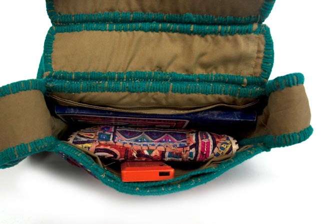 こちらはインドにある材料で、一つ一つ大変丁寧に手作りした特別なバババッグ。一個つくるのに、半月から一ヶ月はかけていると思われる丁寧に作られたオーラの漂うバババッグです。バババッグは手作りだけに、かけた時間、サドゥーの個性などが十分に出ます。きっとこのバババッグを作っているサドゥーは几帳面で、細かい日本人みたいな性格なのだと思います。色が違っても、どれも似たデザインになっちゃうというのも、几帳面な性格の表れなんでしょうね。