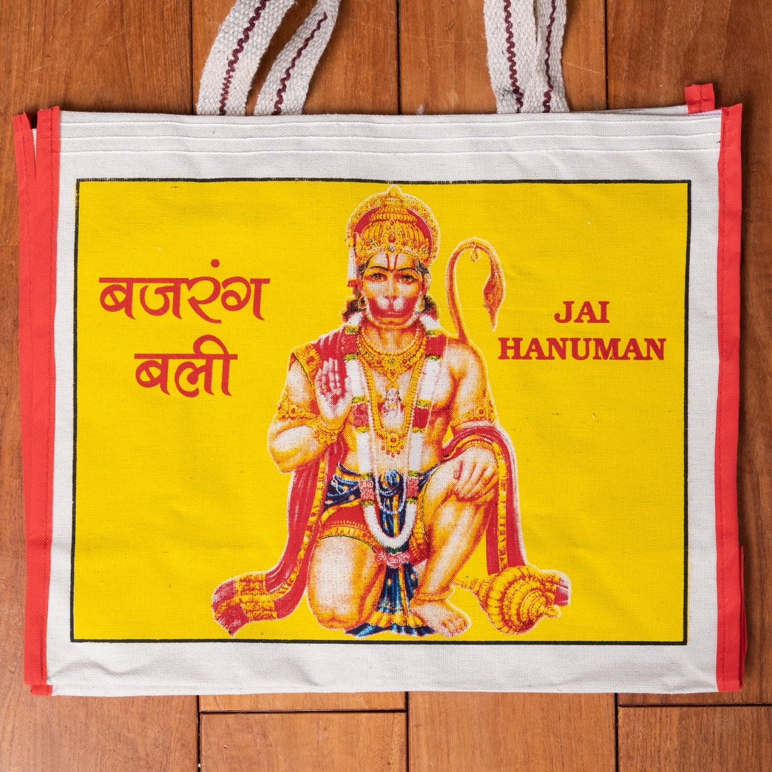 神様達がプリントされた帆布バッグ素敵です椅子に座っているのはシヴァとパールヴァティですかね(^_^)美男美女で良いですね!ハヌマーンらしい神様もいますね、市販の店にはないデザインが目を引きますね、買い物に出掛ける時エコバッグとして使いたいと思います(*^^*)ありがとうございました。
