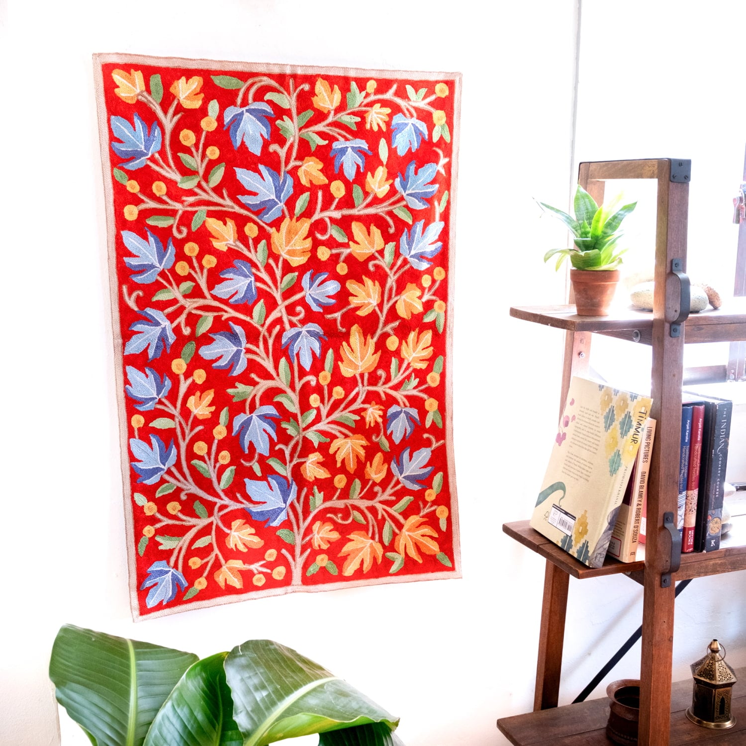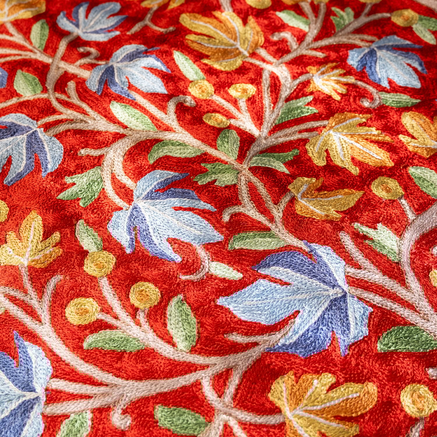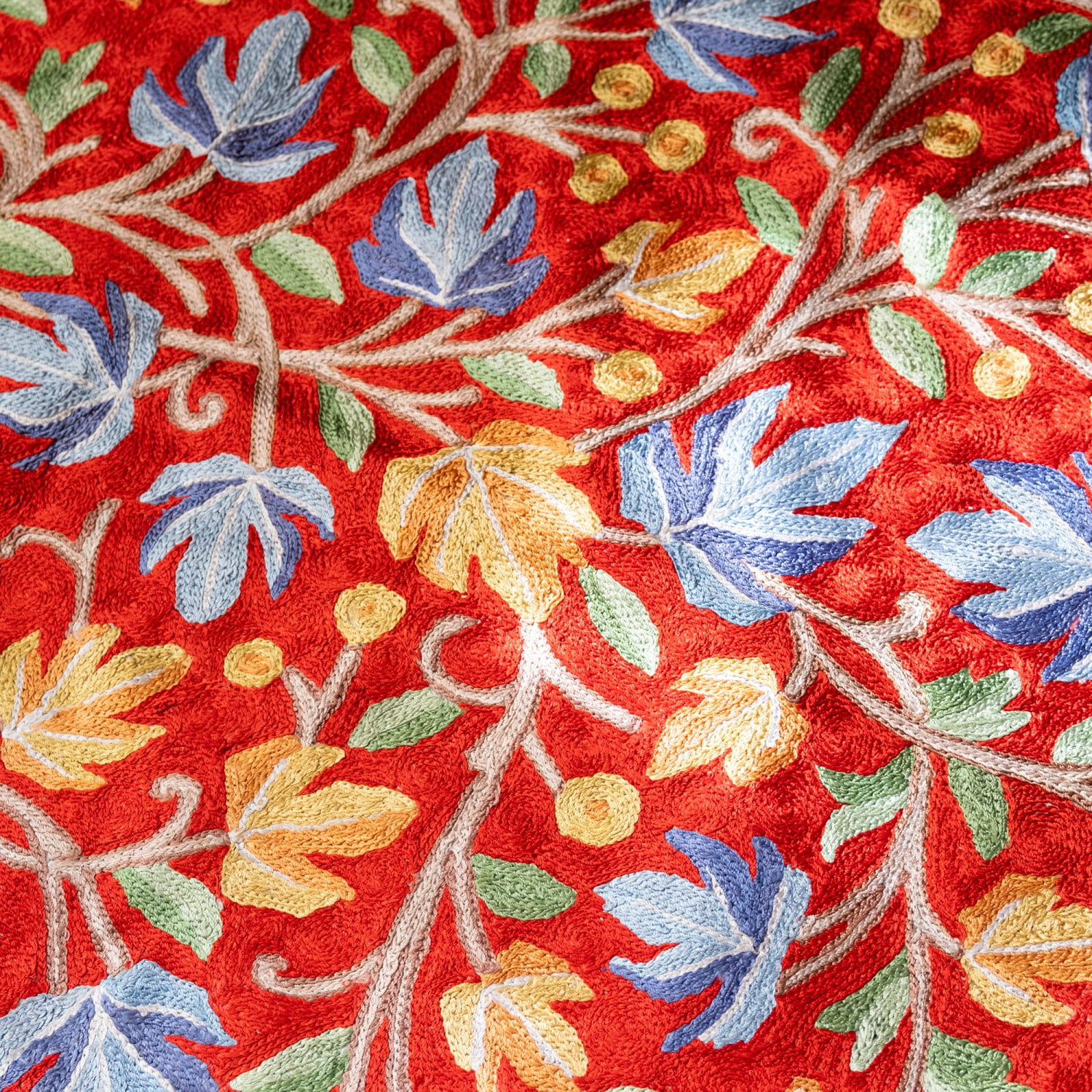 カシミール刺繍の歴史は、15世紀頃に中央アジア、ペルシャ、そしてインドの文化が交差する中で育まれてきました。アリ(かぎ針)を使った技術は、もともと靴職人が革製品を装飾するために使っていた技法がカシミールの豊かな繊維文化と融合し、布地への刺繍へと進化したと言われています。16-17世紀になり、刺繍は宮廷芸術として花開くこととなり、19世紀には織物の代わりとして刺繍製品が普及し、世界的な輸出産業へと発展していきます。