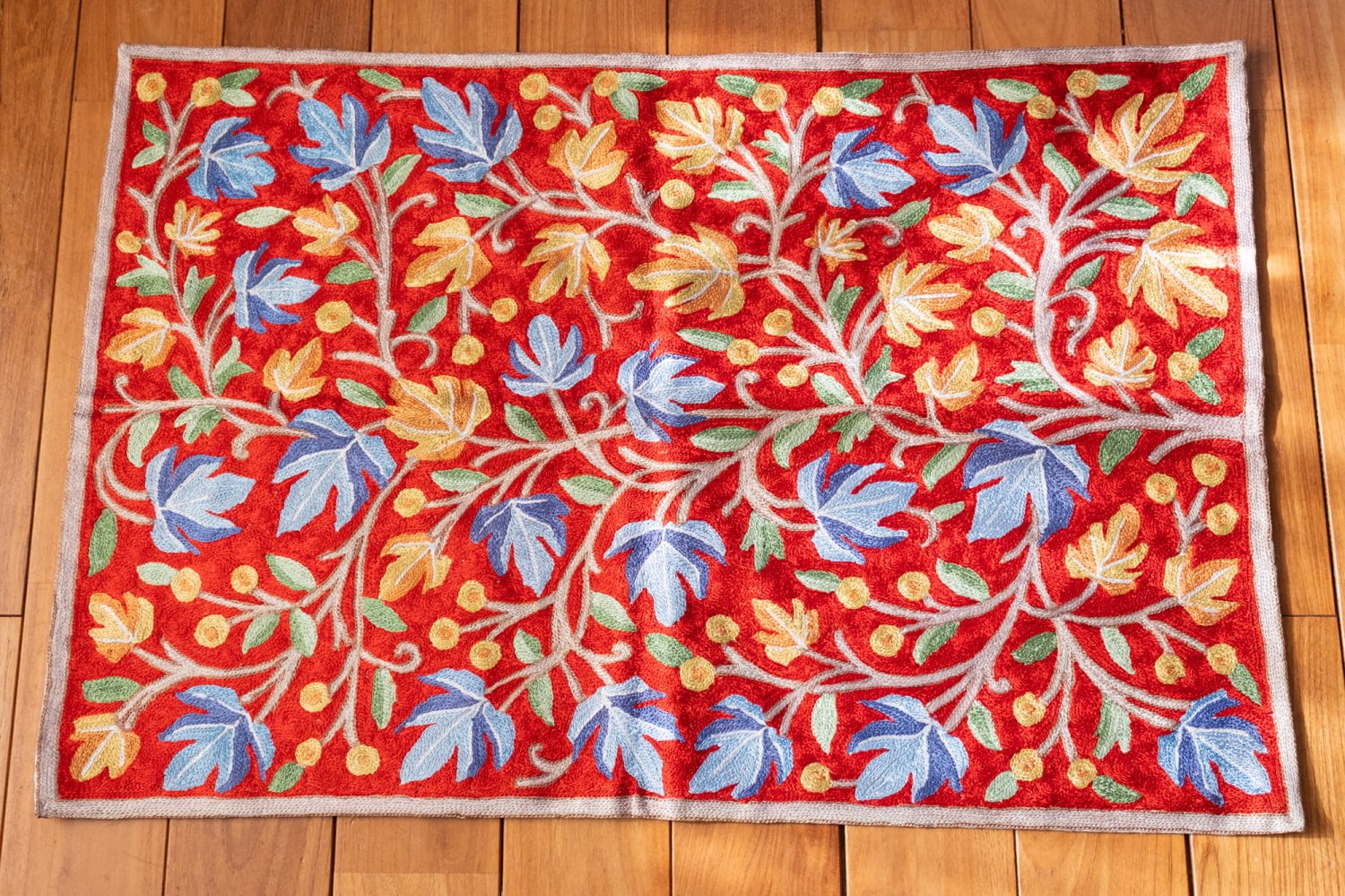 【1点物】チェーンステッチ アリワークが美しい カシミールのシルクラグ【約60cm x 90cm】の同一カテゴリ商品