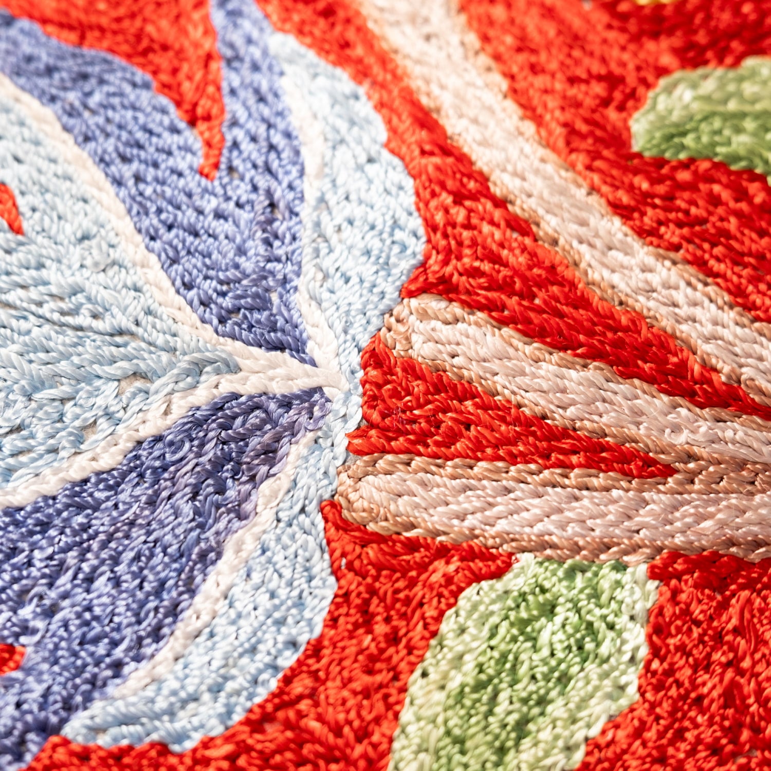| 手刺繍製品についてのご案内 | 本製品は、カシミールの職人が一点一点、すべて手作業で刺繍を施しています。 そのため、模様のわずかな歪みや糸の風合いなどは、手仕事ならではの「世界にひとつだけの個性」としてお楽しみいただけますと幸いです。機械製品にはない温もりをご理解の上、ご購入ください。 |