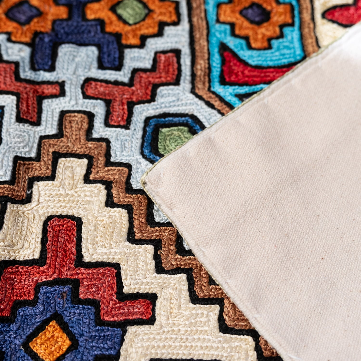 【1点物】チェーンステッチ アリワークが美しい カシミールのシルクラグ【約60cm x 90cm】