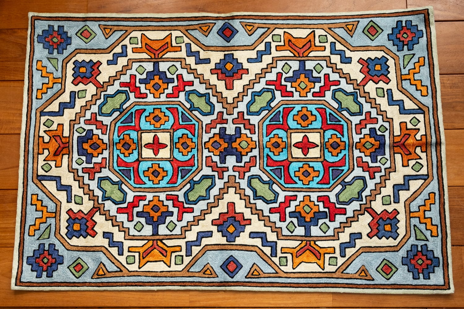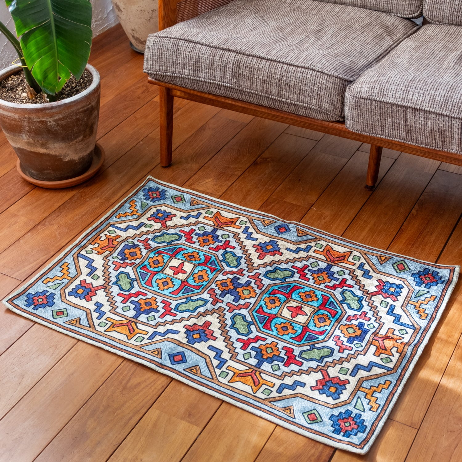 【1点物】チェーンステッチ アリワークが美しい カシミールのシルクラグ【約60cm x 90cm】の同一カテゴリ商品