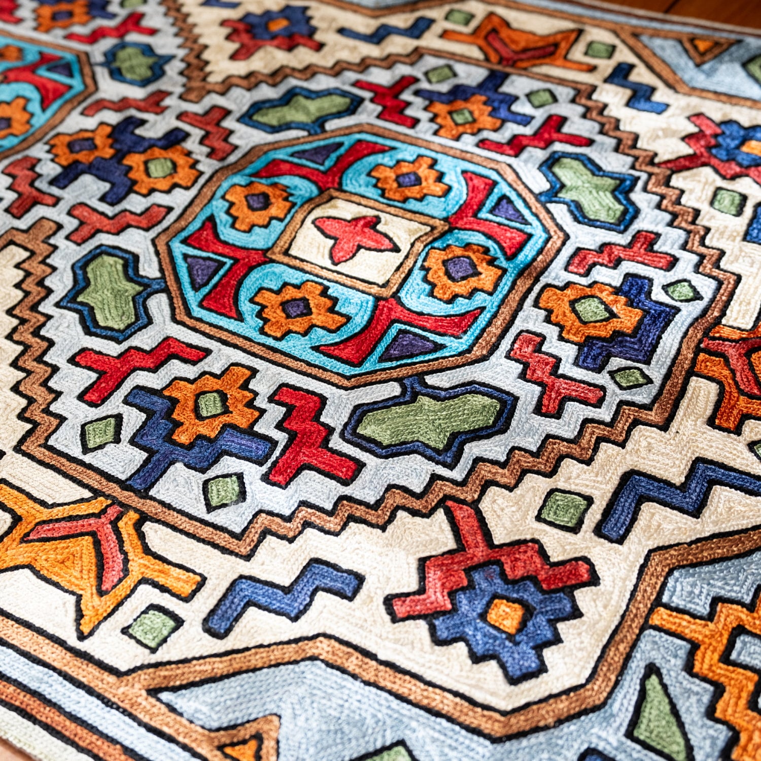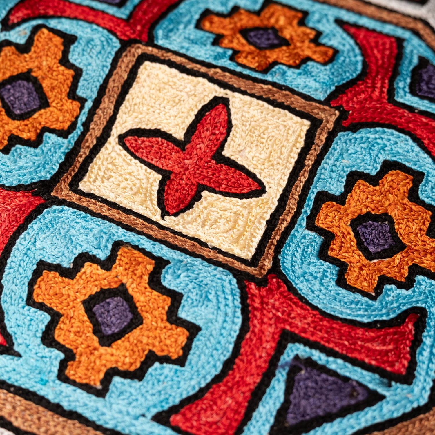 カシミール刺繍の歴史は、15世紀頃に中央アジア、ペルシャ、そしてインドの文化が交差する中で育まれてきました。アリ(かぎ針)を使った技術は、もともと靴職人が革製品を装飾するために使っていた技法がカシミールの豊かな繊維文化と融合し、布地への刺繍へと進化したと言われています。16-17世紀になり、刺繍は宮廷芸術として花開くこととなり、19世紀には織物の代わりとして刺繍製品が普及し、世界的な輸出産業へと発展していきます。