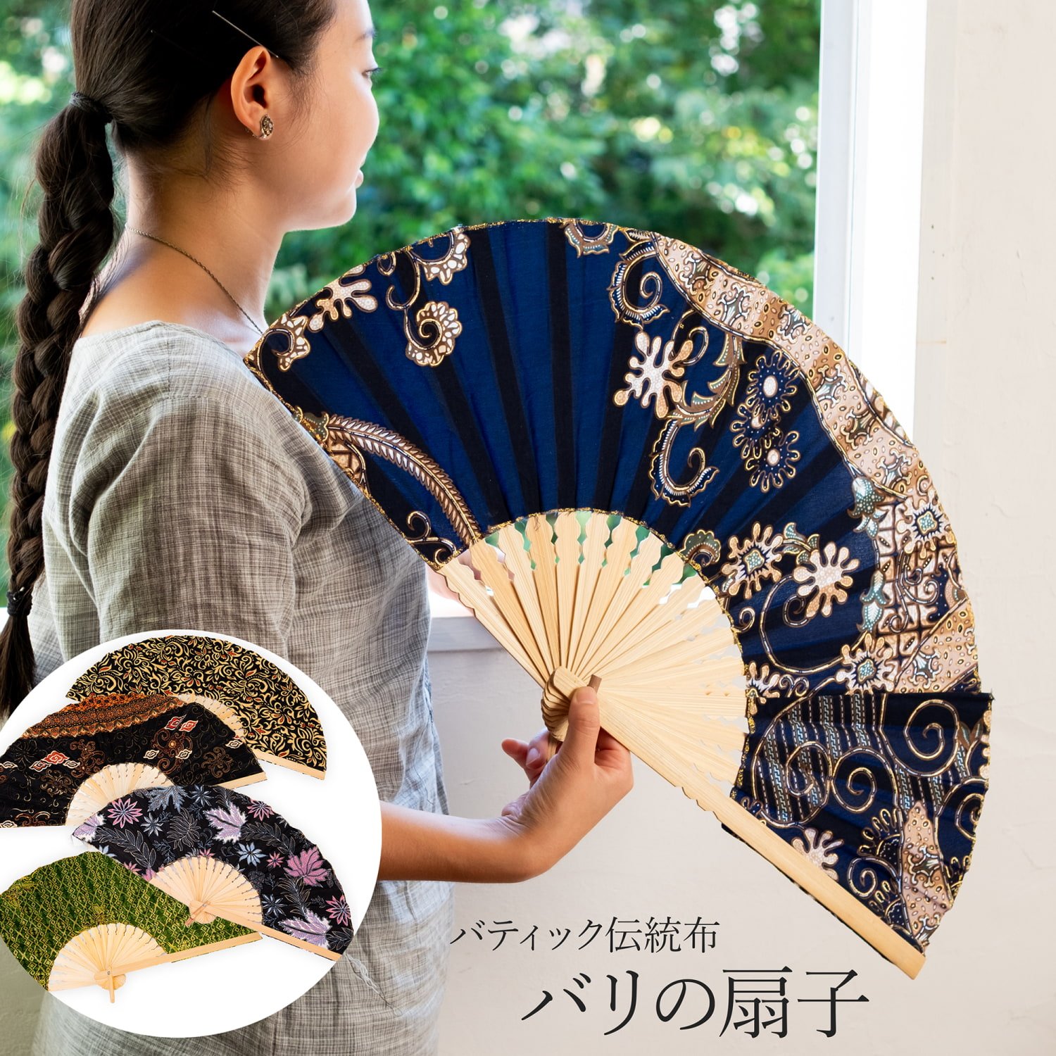 キーワード:扇子 うちわ 伝統模様 トライバル アジアン バリ せんす バティック 更紗 伝統布 竹 バンブー 扇 デコレーション バリ雑貨 インドネシア 夏 お出かけ 浴衣 小道具 リゾート ナチュラル テキスタイル