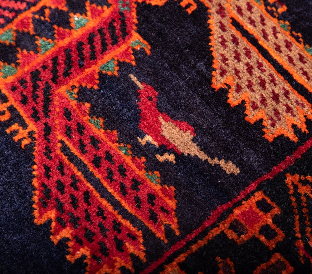 バローチ絨毯とは、パキスタン南部周辺諸国にまたがるエリアで生活する遊牧民族バローチが作っている絨毯です。バローチ絨毯、もしくはバルーチ絨毯とも呼ばれます。色調は赤を基調とし、ブラウン、ダークブルーが多用されている絨毯です。絨毯の表面となるパイルにはウールが使われ、経糸にはウールとヤギの毛が使われます。