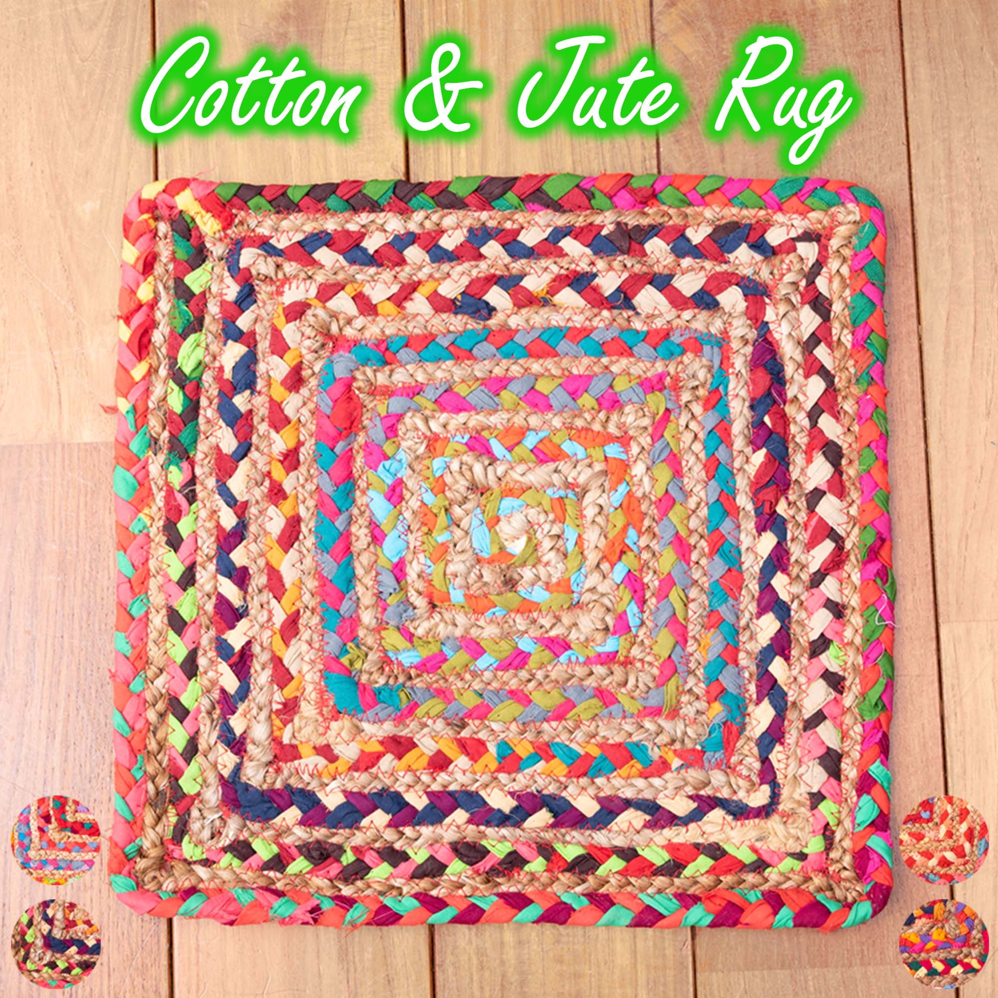 コットンとジュートのカラフル手編みラグ スクエアタイプ【直径36cm】