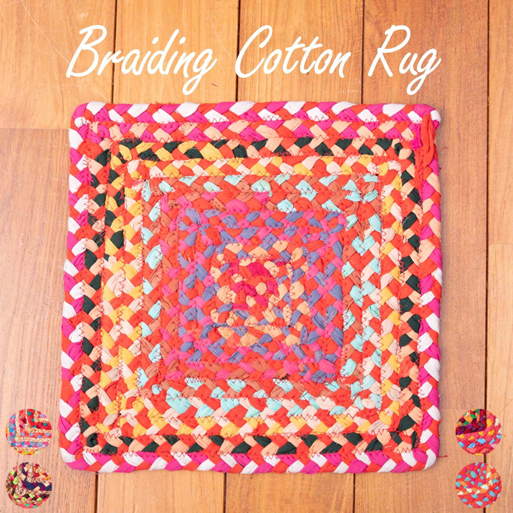 コットンのカラフル編み込みラグ スクエアタイプ【直径35cm】