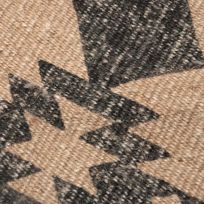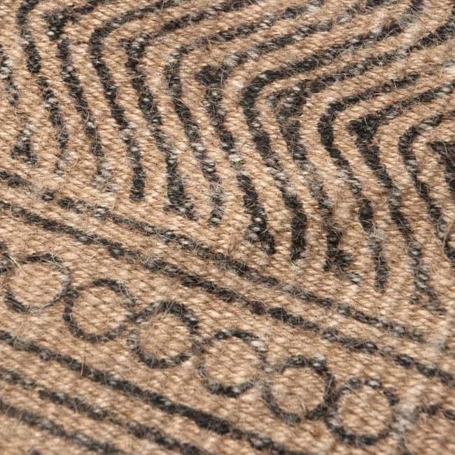 インド西北部、パキスタン東北部にまたがる地域で、シーク教発祥の地と言われているパンジャブで元々作られ始めたと言われているダリー。元々は女性達がグルドワラと呼ばれるシーク教の寺院のためにも織っていたと言われており、一枚一枚しっかり丁寧に編まれていて、とても丈夫です。ベースの色合いは落ち着いたアースカラーのものが多く、洋室・和室・ナチュラルなインテリアと意外とどんな空間でも合わせやすく、程よいアクセントになります。こちらのダリーは編まれた後にジャイプルでベッドカバーと同じ様な模様をスクリーンプリントしたデザイン性の高い一品です。