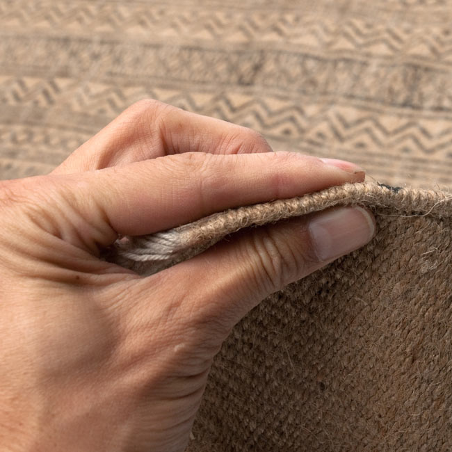 ジュートは、その生産の過程で出る廃棄物の処理が環境にかけるコストが少なく、またジュート製品自体の生物分解性が高いことから、近年は環境への負荷が少ないエコな素材としても注目されています。天然素材ならではのザラッとした感触が特徴で、素足にとても気持ちが良いです。
