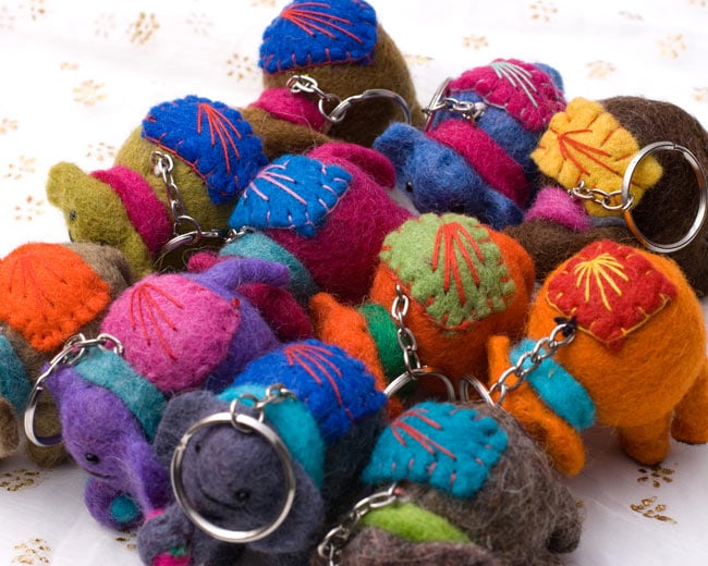 フェルトの柔らかい風合いが見ても触ってもほんわかさせてくれる手作りのぞうさんキーホルダーです。ネパールの人達がひとつひとつ丁寧に丹精込めて作りました。■かばんや鍵にピッタリサイズ