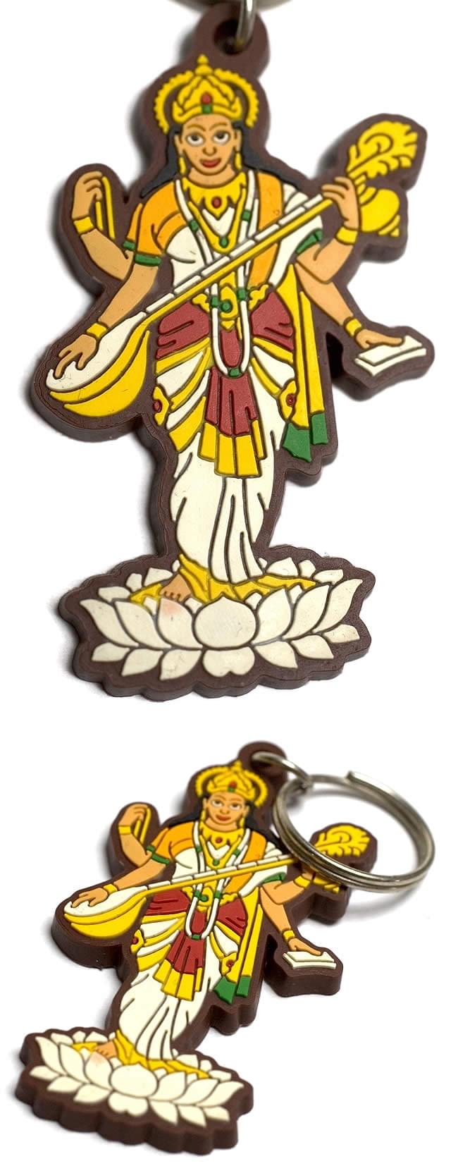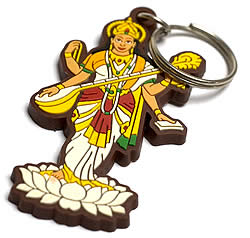 このキーホルダーのモチーフになっている芸術の神様、サラスバティーは南インドでよく見られるヴィーナという弦楽器を手に持った姿で描かれます。とても知的な印象を受けますね。