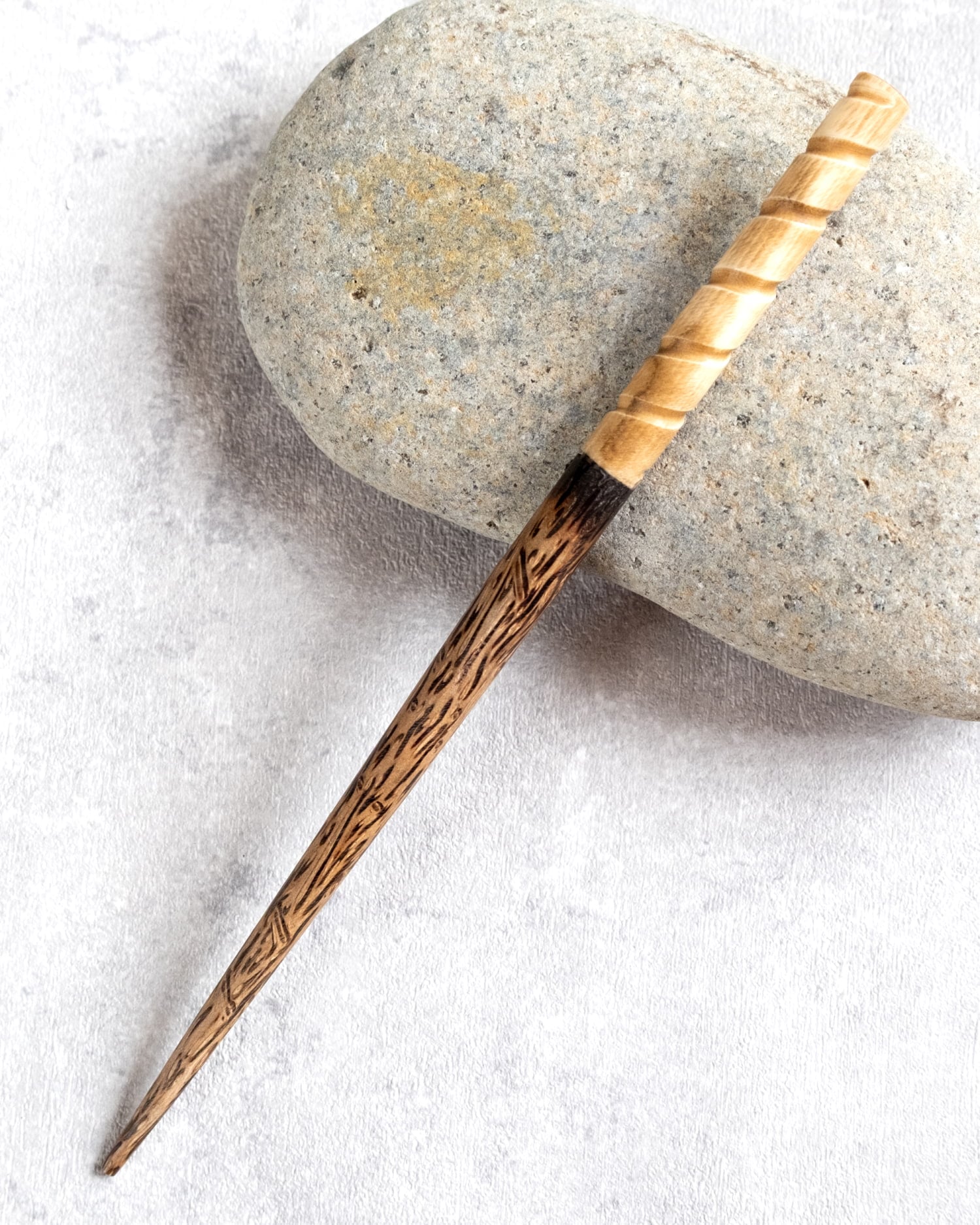 水牛の角と美しい木目のかんざし