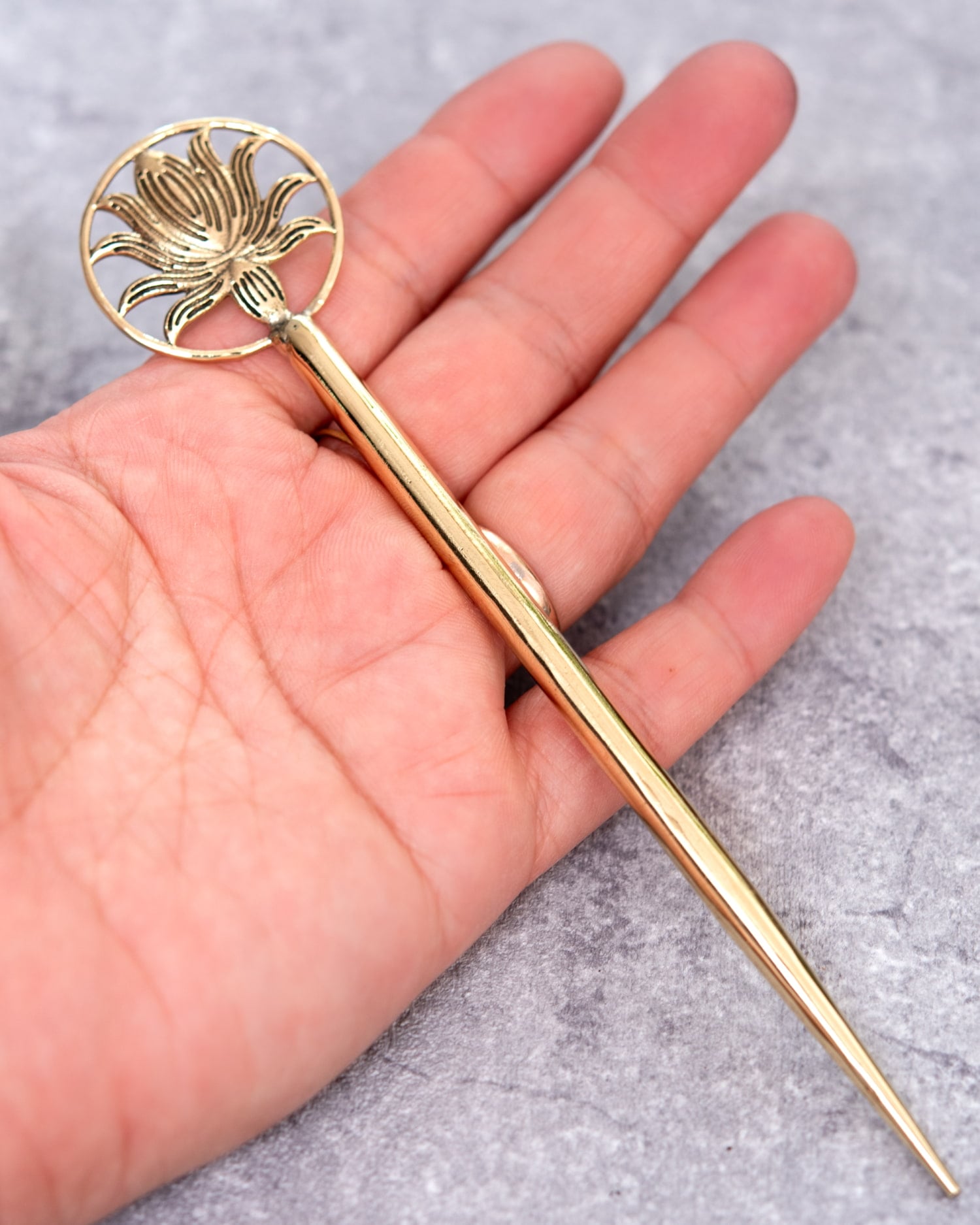 こちらもエスニック感満載で先っぽにチャラチャラと動く飾りがあるのが可愛いです。ただ柄の金属部分の先があまりきれいに処理されていなかったため髪に挿した時に引っ掛かてしまいました。先をやすりで少し研磨し使用しています。
