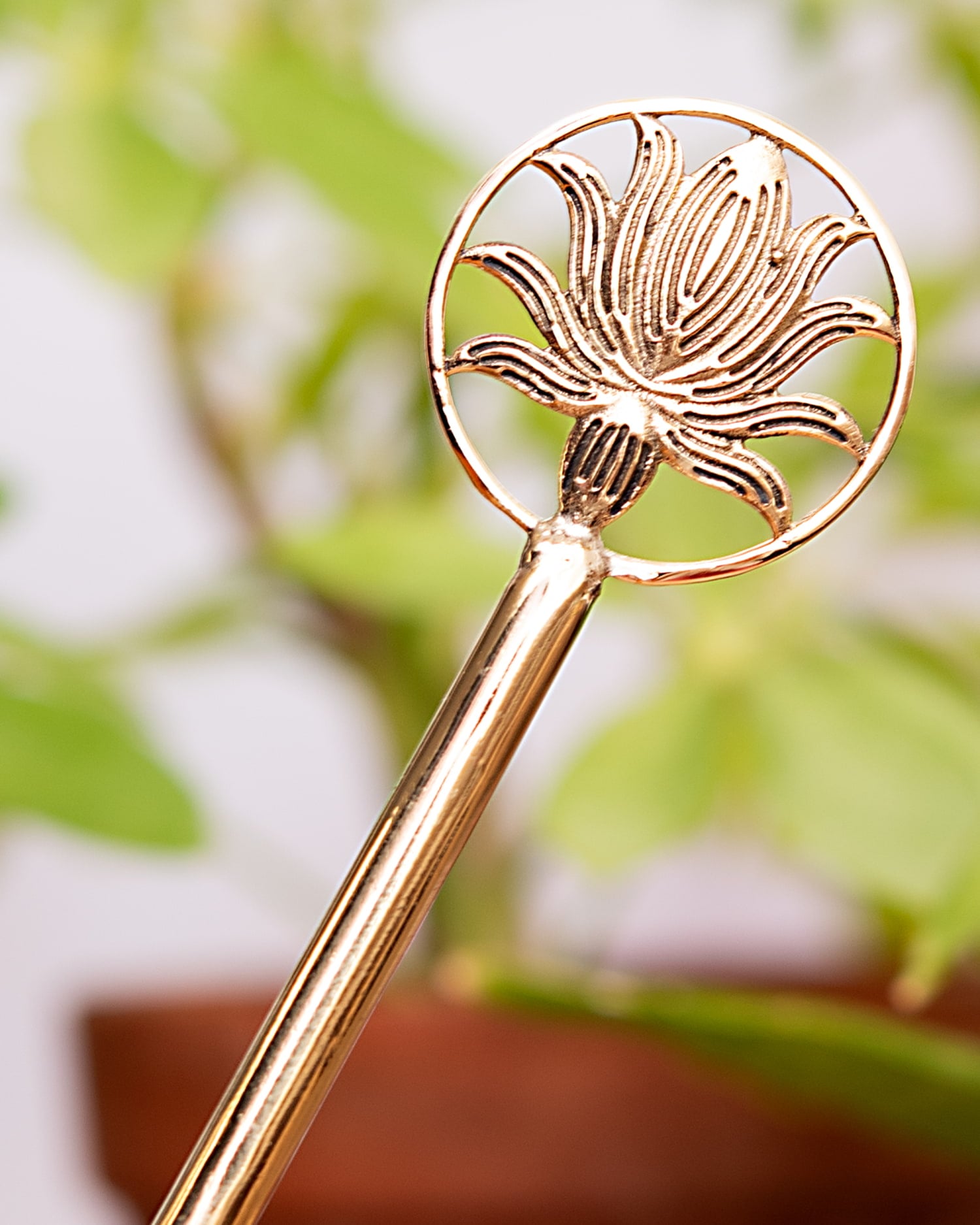 インドから金色のかんざしがやってきました。日本では割と黒や琥珀などの渋い色が多く出回っているというイメージですが このかんざしはインドらしく派手な金色です!程よい大きさかつ、髪にさせばよく目立つ金色なので、どんな髪の色や髪型でもお似合いですよ。