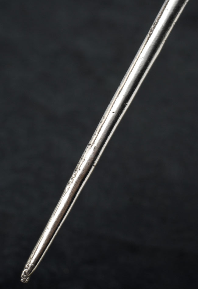 毎日かんざし一本で髪をまとめているので、プラスチックや軟らかい金属のものだと折れたり曲がったりすることが多いのですが、これは今のところ壊れる要素が見当たらない。そして何でしょうこの軽さ。材質が謎すぎます。先が尖っていてなかなか危険です。武器になりそうです。そんなところも含めてお気に入りです。