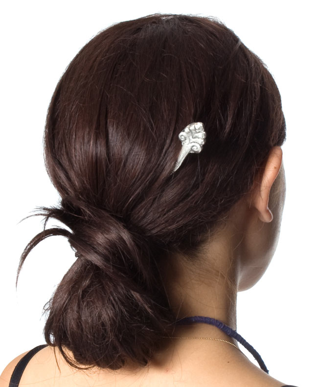 ガネーシャの金属かんざしを頂戴いたしました。長さも丁度良く、耐久性にも優れています。私はこれ一本でシニョンもしくは夜会巻きを作っています。朝出勤時より夜自宅に帰るまで刺し変えることもなく、しっかりと固定できます。気に入って2本目も頂戴致しました。有難うございました。今後も利用させていただきます。