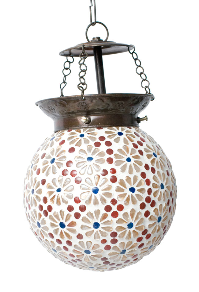 インド料理といえばカレーが大変有名ですが、カレーの付け合せもなかなか奥が深く、侮れません。写真が代表的なカレーの付け合せで、生のたまねぎ、ライム、生の青唐辛子、アチャールと呼ばれる漬物が映っていますです。日本でも薬味は慣れないと食べづらいのと同様、インドの付け合せも旅行者には厳しい食べ物。でも、我慢して食べていくと…だんだんとその美味しさが分かってくるのです吊り下げモザイクランプ - 丸型(直径:約15cm)の評価 (合計:1件)