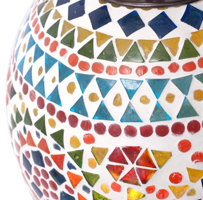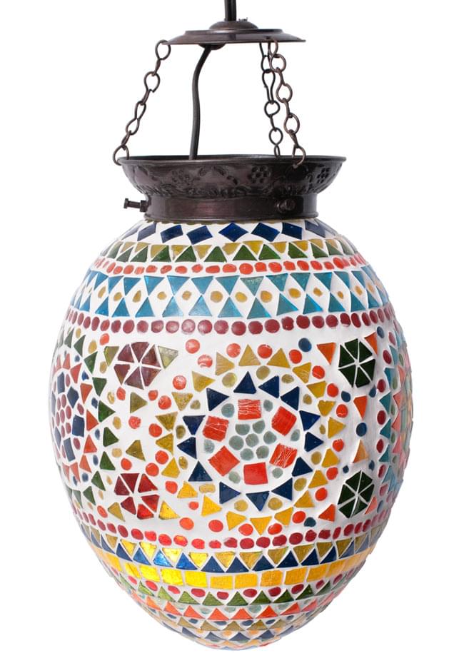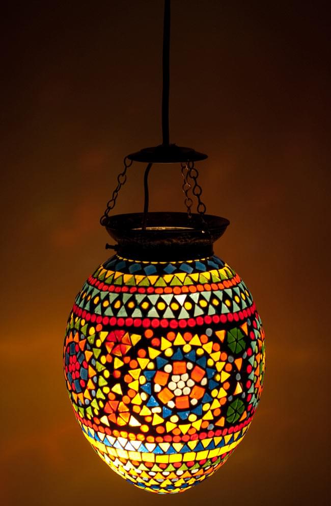 数百年も昔から、ほとんど変わる事のない工程で作られているインドの伝統的なランプです。まず、外側のガラスを型に入れて作り、そのガラスに色のついた小さなガラスをモザイクみたいにしてはめ込み、白い目止めの塗料を塗って作っています。このランプを求めて、ティラキタスタッフがインドのモザイクランプ工場に行ってきました!!■カラフルでエスニックなあかり