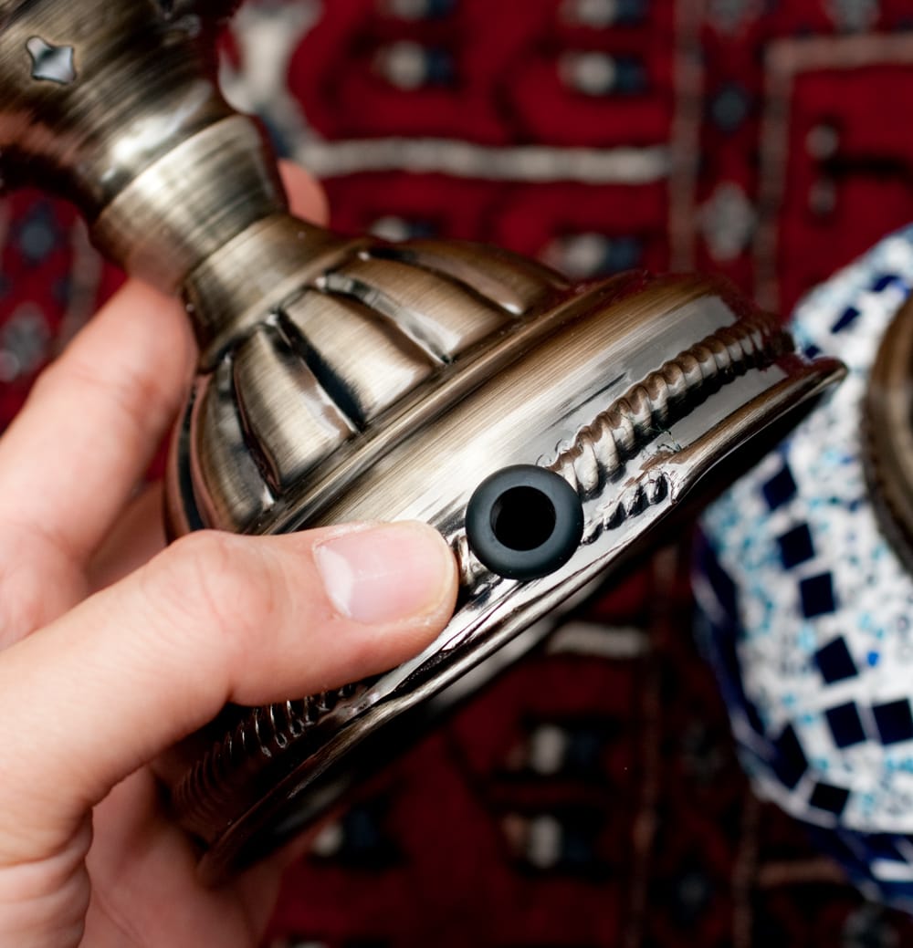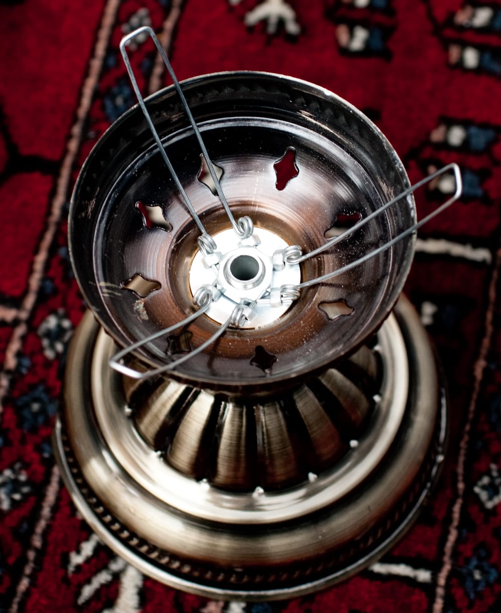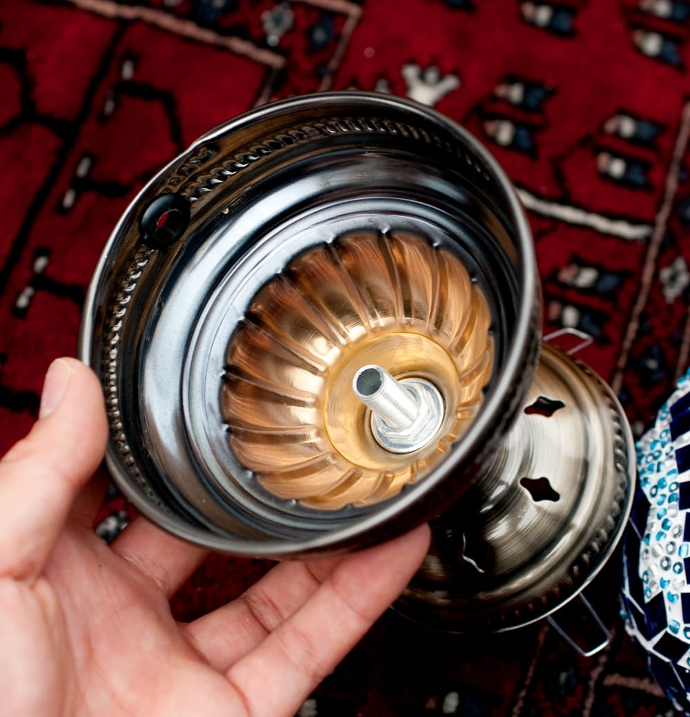 特に明かりを灯していない普段でもかわいい見た目のランプですが、中に電球を入れると一つ一つの小さな穴から光がこぼれ、また胴体部分のガラスから灯りがもれだし、とても幻想的で、ファンタジック。アラビアンナイトの世界にタイムスリップしたかのような感覚に浸ることが出来ます。ベリーダンスが好きな人、中東の幻想的な雰囲気に包まれたい方、ここではないどこかな感覚を求めている方にオススメです。