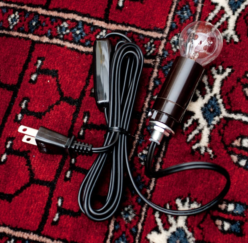 こちらの商品には電球とE17用の電源コード付きソケットが付属しますが、お客様ご自身で分解・配線して頂く商品となります。電球ソケットの分解方法はこちらの記事後半をご参考ください。