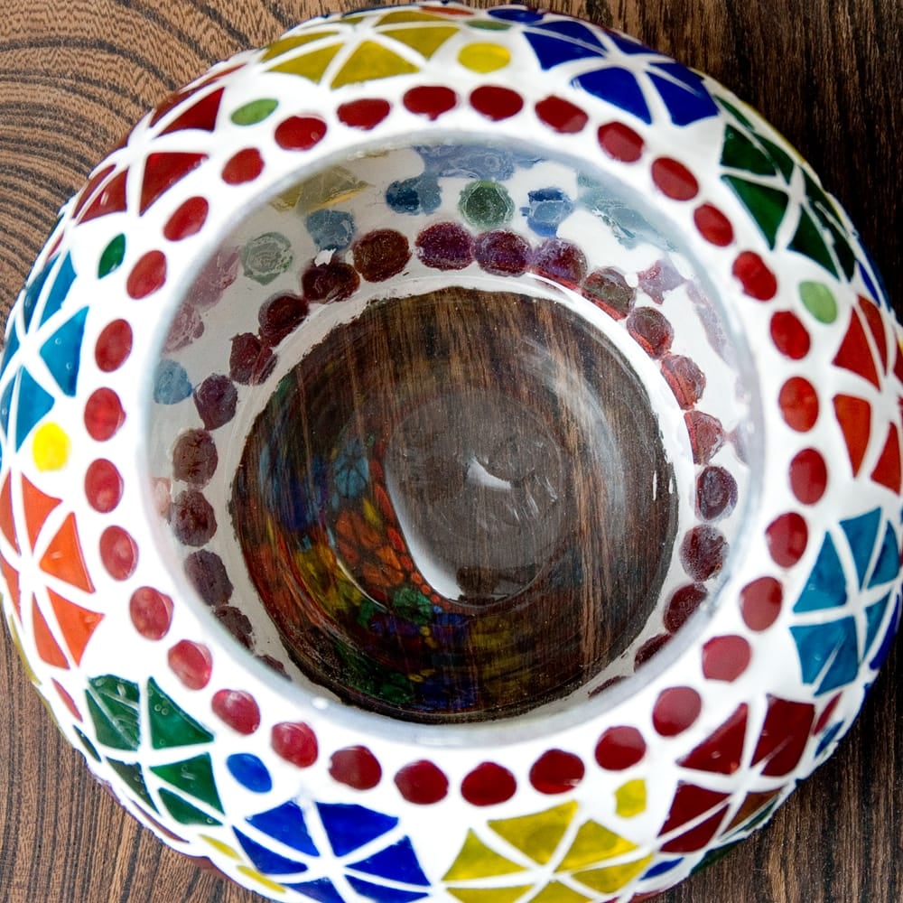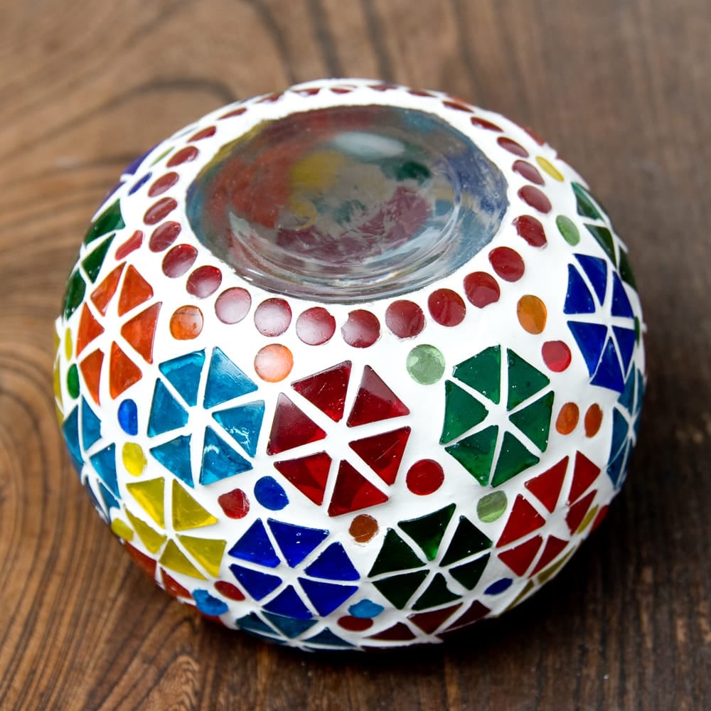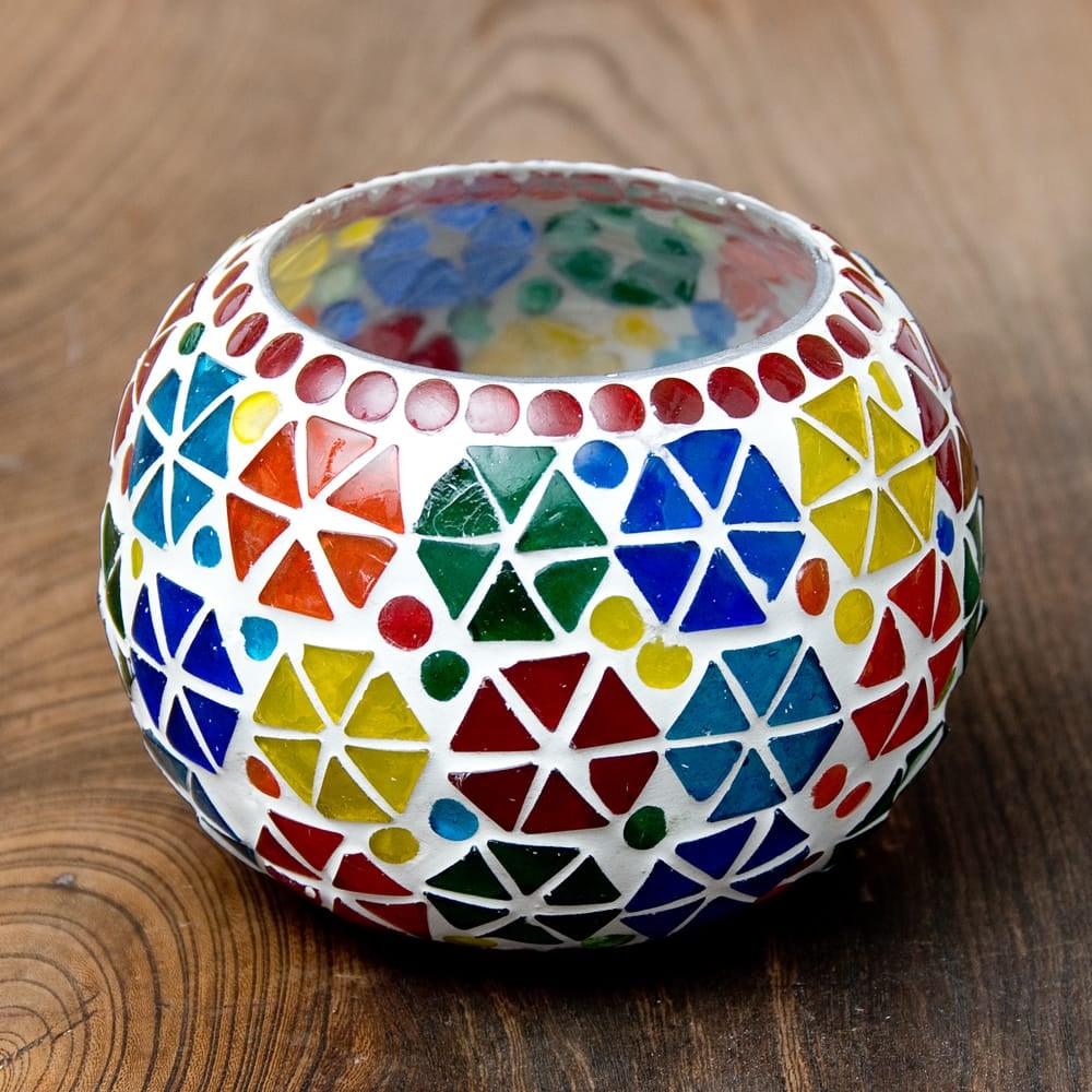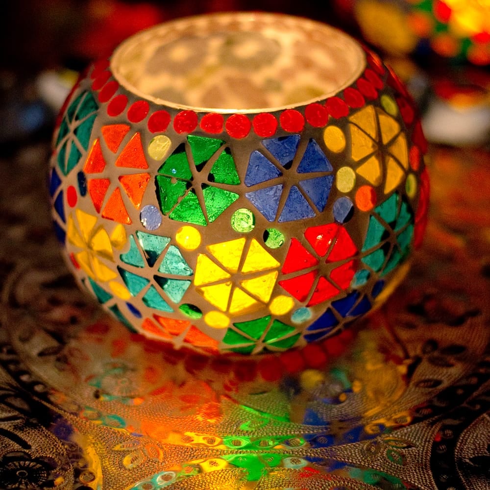 キャンドルを入れて暗い部屋で使うとカラフルなモザイク模様がとても綺麗に輝きます。